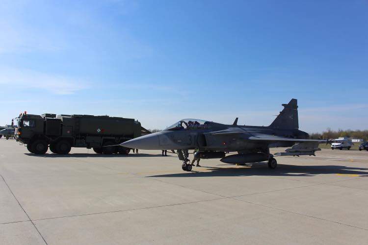 Járó hajtómű mellett töltöttek üzemanyagot (\"hotref\") az MH 47. Bázisrepülőtér Repülést Biztosító Század katonái a kecskeméti Gripenekbe.