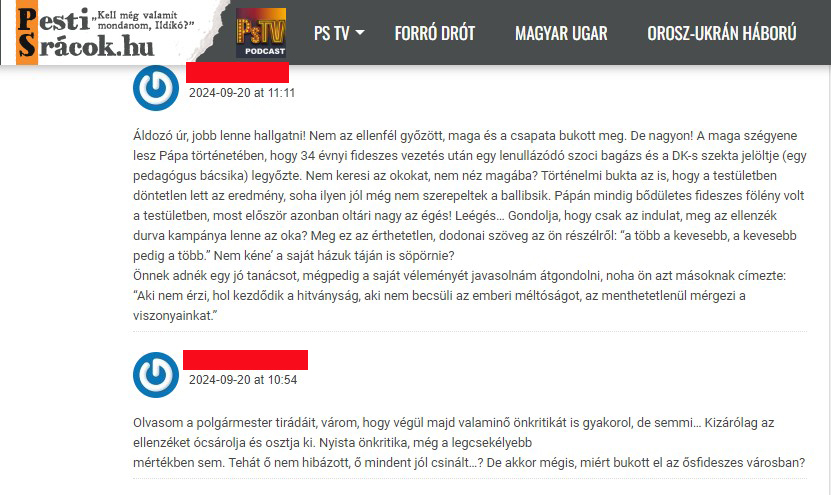 A hosszú írásban nyoma sincs az önkritikának, vagy a belátása annak, hogy valamit esetleg ő is rosszul csinált volna. Érdekes, hogy az egyik leghangosabb kormánypárti portál, a Pestrisrácok.hu olvasói sem osztják a búcsúzó polgármester gondolatait.