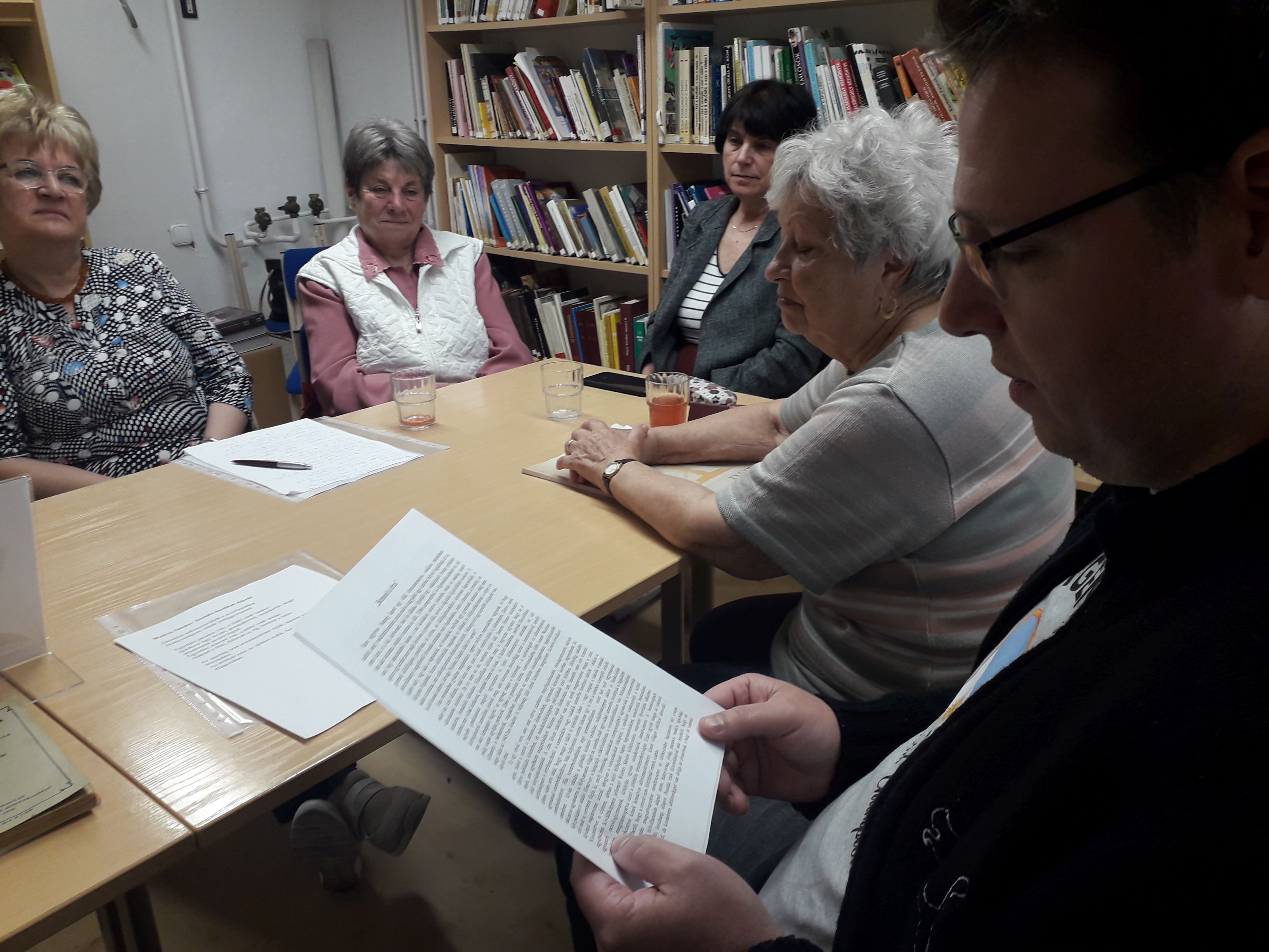 A kellemes légkörű, május eleji egyleti találkozó kötetlen beszélgetéssel zárult a Nagytemplom szomszédságában lévő iskolai bibliothéka ódon falai között.