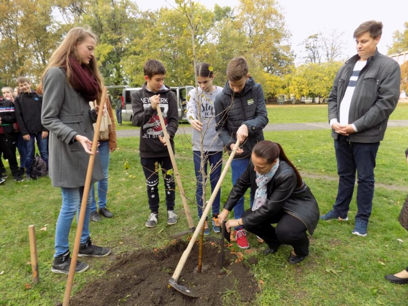 Ma már a tanulók is bekapcsolódtak a programokba, délután az intézményvezetők a három legfiatalabb és a három legidősebb refis diákkal eperfát ültettek az Erzsébet ligetben. Gránásiné Bácsi Tünde igazgató elmondta, hogy a pápai kollégiumot 1531-ben alapították, 1752-ben azonban a református egyházat száműzték Pápáról, a következő harminc évben a kollégium a közeli Adásztevelen folytatta működését. A hagyomány szerint innen származik a kollégium címerében szereplő eperfa, a kis falusi iskolában ugyanis nem fértek el a pápai diákok, ezért egy terebélyes eperfa alatt folyt az oktatás. S innen a jelmondat is, a Szabadon tenyészik - jelképe annak a nyitottságnak, ami mindig is jellemezte a kollégiumot, jelképe a biztonságnak, amit nyújt az iskola, valamint a jelképe a lehetőségeknek, ami megnyílik az itt tanulók számára. Az alkalmon Kerpel Péter mondott verset. Lucza Levente végzős volt az egyik faültető, mint mondta, számára a ligetben ültetett eperfa azt is jelképezi, hogy bárhova kerül innen, mindig kicsit pápai marad.