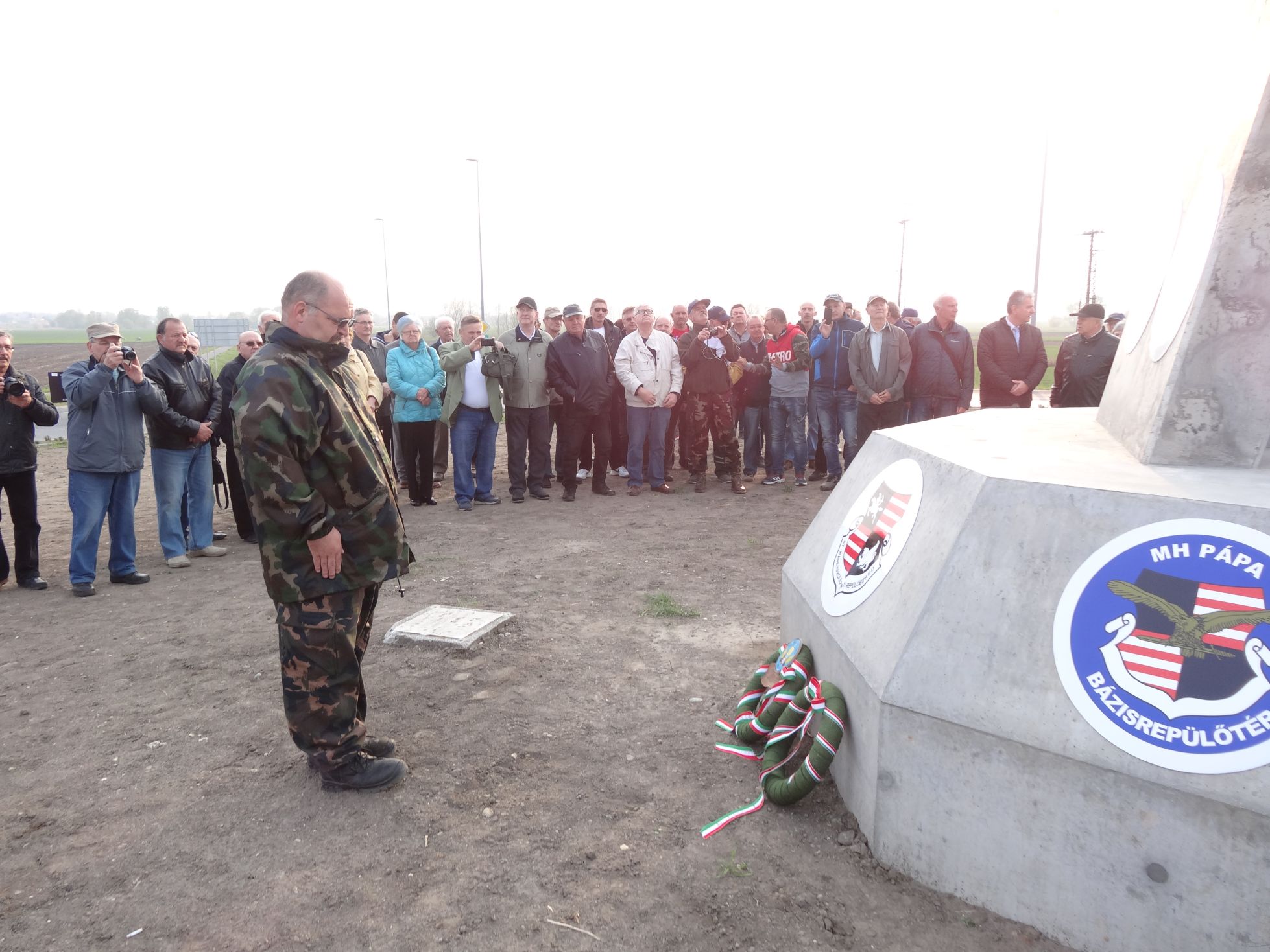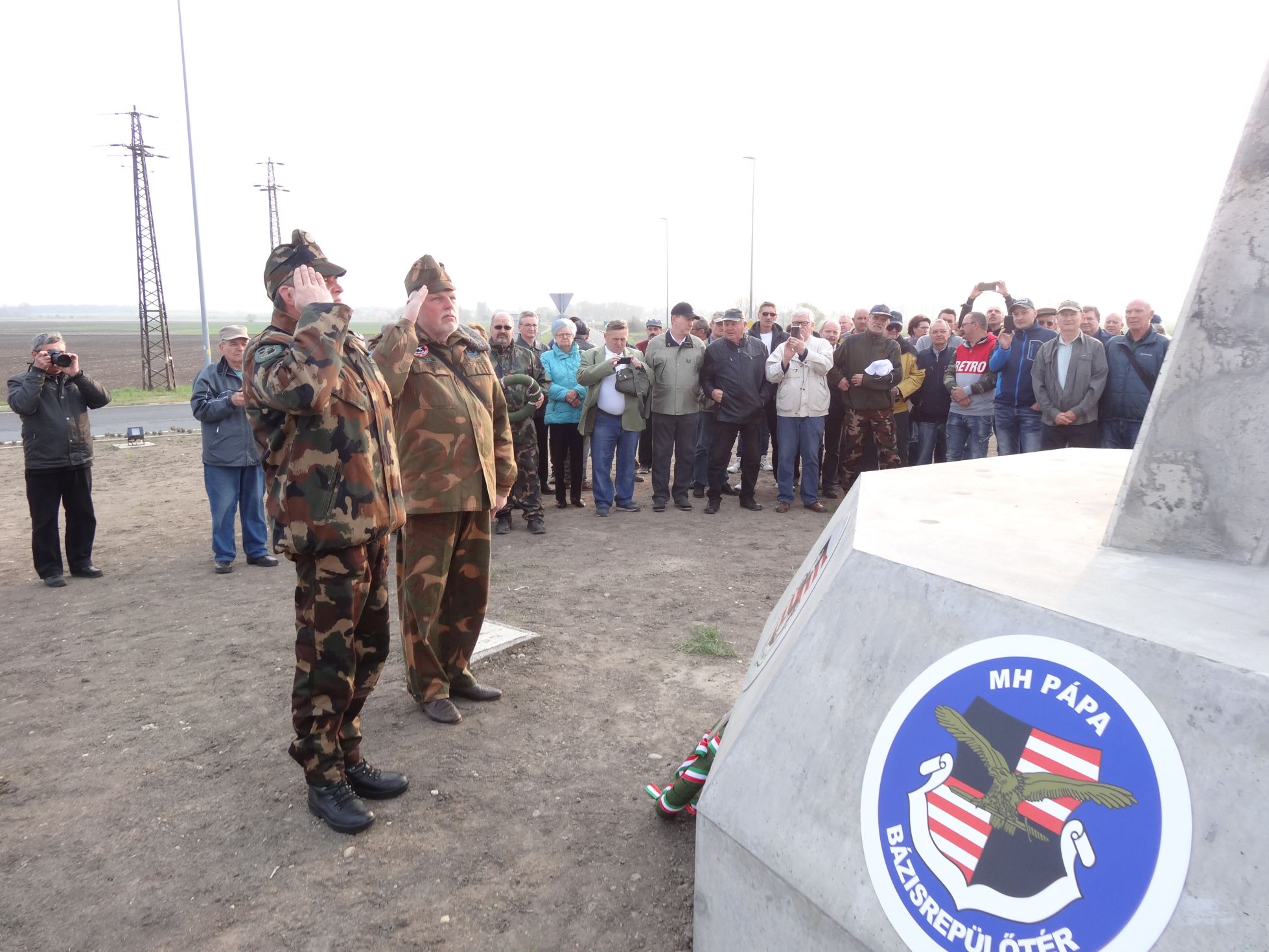 Egykori és jelenlegi pápai katonák és családtagjaik jelenlétében ünnepélyesen elhelyezte a nemrég felavatott MiG-21 emlékmű talapzatán a két egykori század jelvényét, az Ég Katonái Hagyományőrző Egyesület.