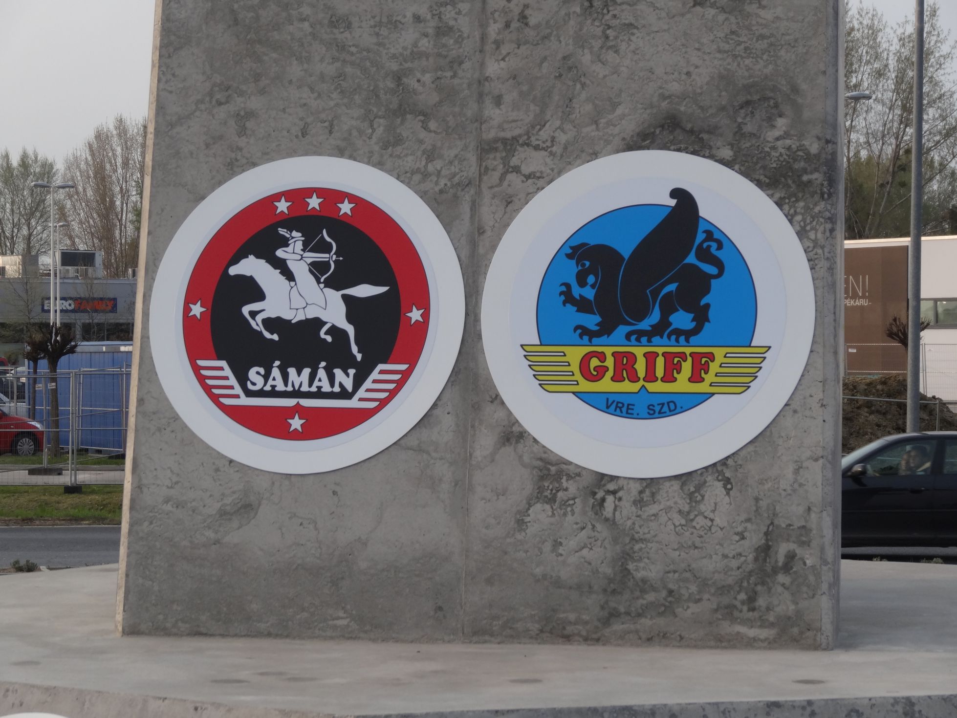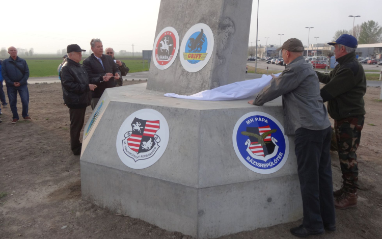 Simon Róbert, az egyesület elnöke elmondta, miután felavatták ezt a csodálatos emlékművet, többen megkeresték az egyesületet azzal, hogy két logó hiányzik róla. Összehívták az elnökséget és úgy döntöttek, hogy kezdeményezik az egykori Sámán (MiG-23) és Griff (MiG-21) századok jelvényeinek elhelyezését. Felkeresték Áldozó Tamás polgármestert és Magasy Zsoltot, a Bázisrepülőtér parancsnokát, akik pozitívan álltak a kezdeményezéshez. Ezt követően felgyorsultak az események és a mai napon fel is kerülhettek a jelvények az emlékmű talápzatára.
