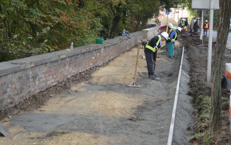 Áldozó Tamás polgármester elmondta, a Várkert környezetében több beruházás is zajlik, a zöld város projekt keretében rendezik a szabadtéri színpad környezetét és épül a kastélykerítés is. A közelmúltban helyreállították a korábban leomlott várkerti támfalat, melynek keretében az újjáépült szakasz mentén a járdát is meg kellett volna építeni. A városvezetés azonban úgy döntött, hogy nagyobb szakaszon állítja helyre a járdaburkolatot. Első ütemben a várkerti lejárat és a Nepomuki-szobor között zajlik a járda újjáépítése, majd a kastélykerítés helyreállítását követően, annak mentén is megújítják a burkolatot. A harmadik ütem a Várkert útig érő szakasz megépítését tartalmazza majd, csatlakozva az ott épülő körforgalomhoz - tudtuk meg a városvezetőtől, aki hozzátette, a támfal állagmegóvása is a célja a beruházásnak - túl azon, hogy a járda is rossz állapotú - mivel a csapadékvíz elvezetését is meg akarják oldani, hogy a támfal kevésbé kapjon nedvességet.