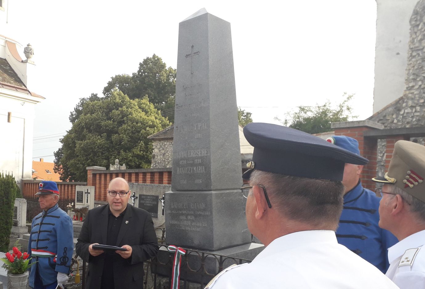 A fegyverletétel mostani kerek 170. évfordulónapjának késő délutánján az Elsősorban pápai Városbarát Egylet (EpVE) ügyvivője, Kerecsényi Zoltán pápai önkormányzati képviselő rövid tisztelgésre, koszorúelhelyezésre hívta a főt hajtani szándékozókat a pápai Kálvária-temetőbe, az ott nyugvó, 120 éve elhunyt Bánóczy Pál síroszlopához, ugyanis a néhai ’48/49-es honvéd tizedes volt az, aki elsőként Pápára meghozta a világosi fegyverletétel hírét. Az emlékalkalmon az EpVE önkéntesei mellett megjelent és tisztelgett Bánóczy szülőhelye, Bakonyszentiván község képviseletében Földing Zoltán önkormányzati képviselő, a Pápai Honvéd Bajtársi Klub részéről Farkasdy Lajos nyá. őrnagy, klubelnök, Gazda József nyá. százados, klub-alelnök, valamint a Pápai Huszár Egyesület nevében Nagy Zoltán, hagyományőrző huszár-őrmester, alelnök és Herédi János hagyományőrző huszárzászlós is.