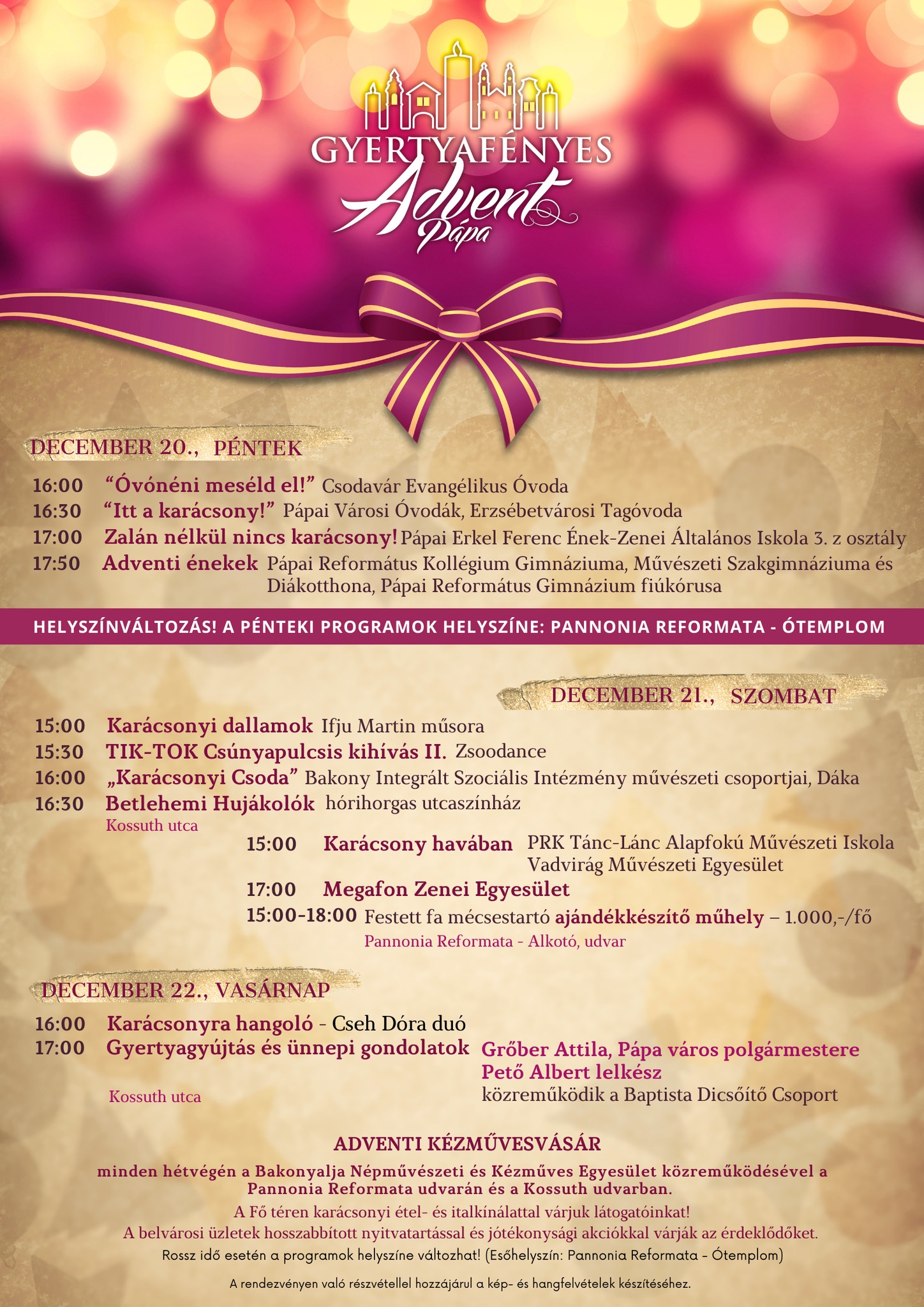 Advent Pápán: Az erős szél miatt az Ótemplomban tartják meg a mai színpadi programokat