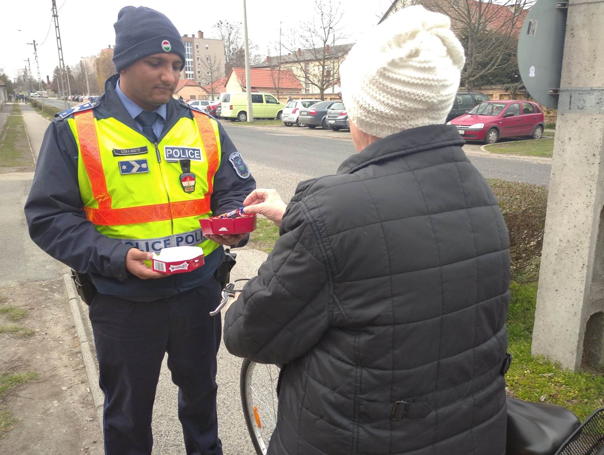 A szabályosan közlekedőket ajándékkal lepték meg a pápai rendőrök nőnap alkalmából.