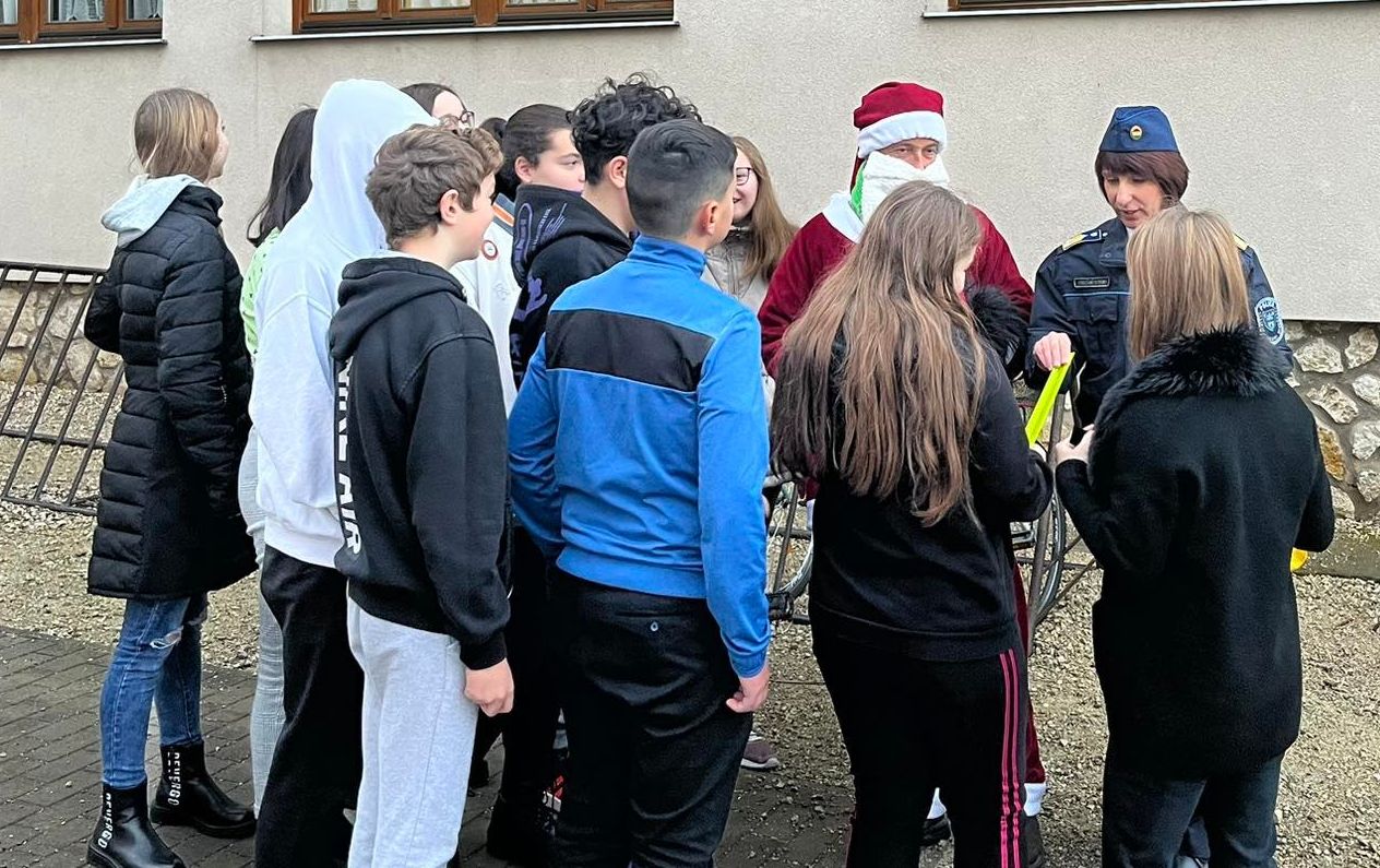 A Mikulás napi közlekedési akció során a rendőrök ellenőrizték a kerékpárral érkező diákok járműveit és felhívták a fiatalok figyelmét a hiányzó kötelező tartozékok pótlására. Ezt követően a biciklisek kerékpár világítást vagy küllőprizmát kaptak a rendőrök társaságában érkező Mikulástól. Az ajándékozásból a gyalogosan, a gépjárművel vagy autóbusszal iskolába érkező fiatalok sem maradtak ki. Őket írószerekkel, szaloncukorral vagy láthatósági csuklópánttal lepték meg a rendőrök, amelyért cserébe egy közlekedési témájú kérdésre kellett válaszolniuk.