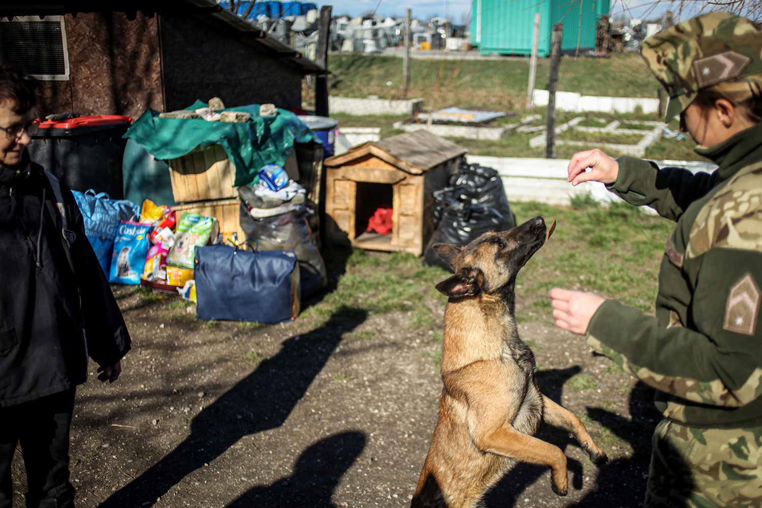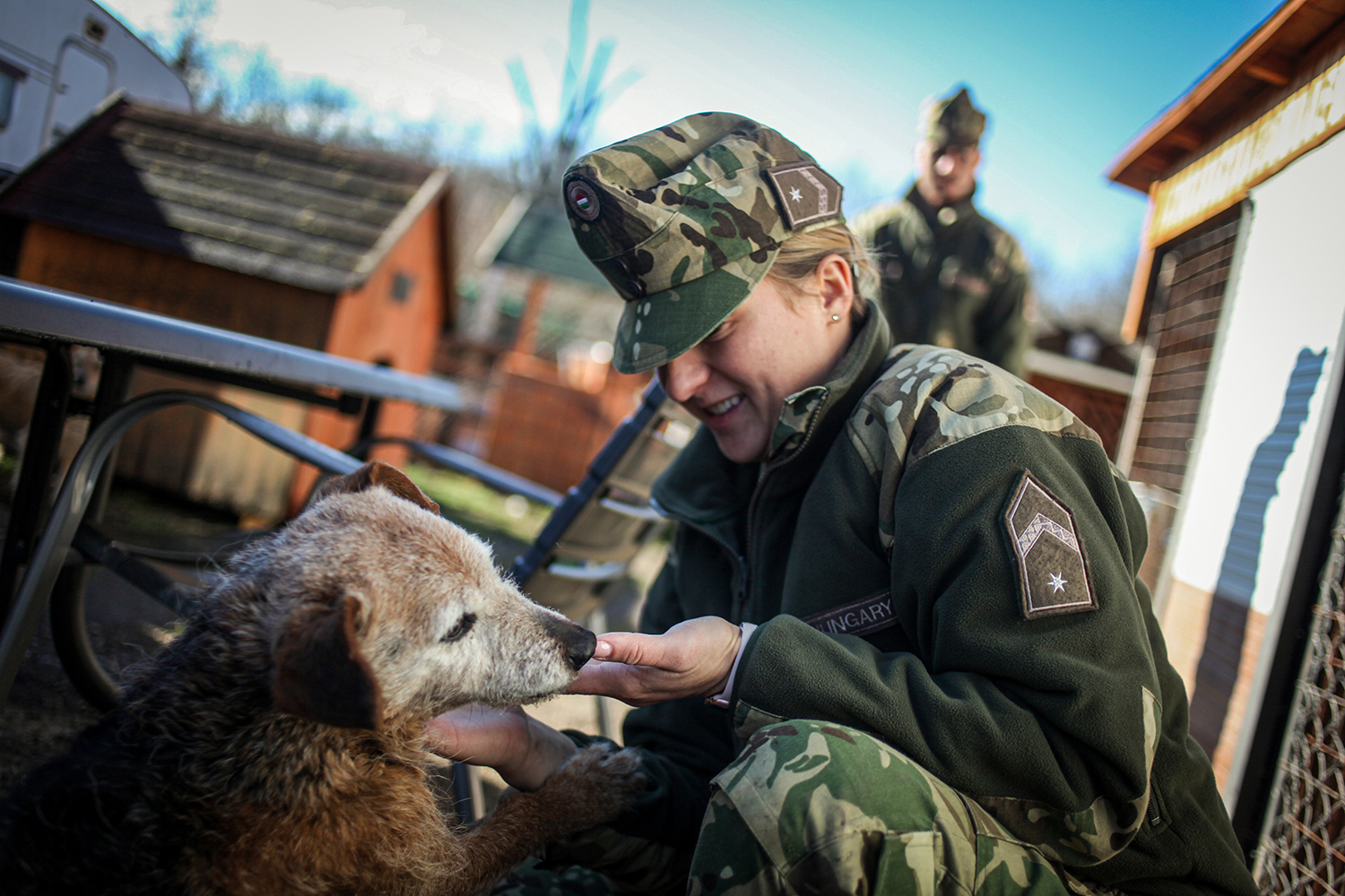 A Második Esély Állatmentő Csoport otthonában Murainé Ibolya fogadta a katonákat. 16 éve állatvédő, 2012 óta vezeti a menhelyet, és jelenleg több tucat kutyáról és macskáról gondoskodik. Az egyenruhásokat izgatott kutyusok fogadták a kapuban, és érdeklődve szaglászták körbe az ajándékba kapott állateledelcsomagot.