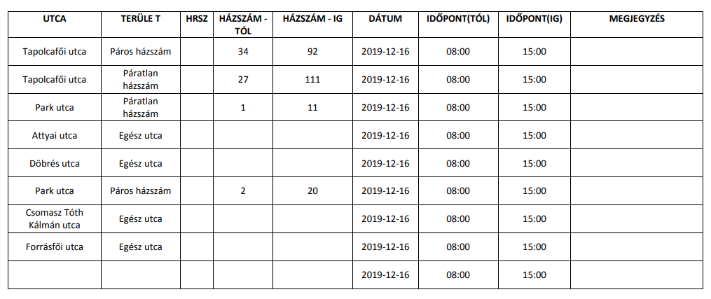 A hálózat korszerűsítése miatt nem lesz áram a következő utcákban.