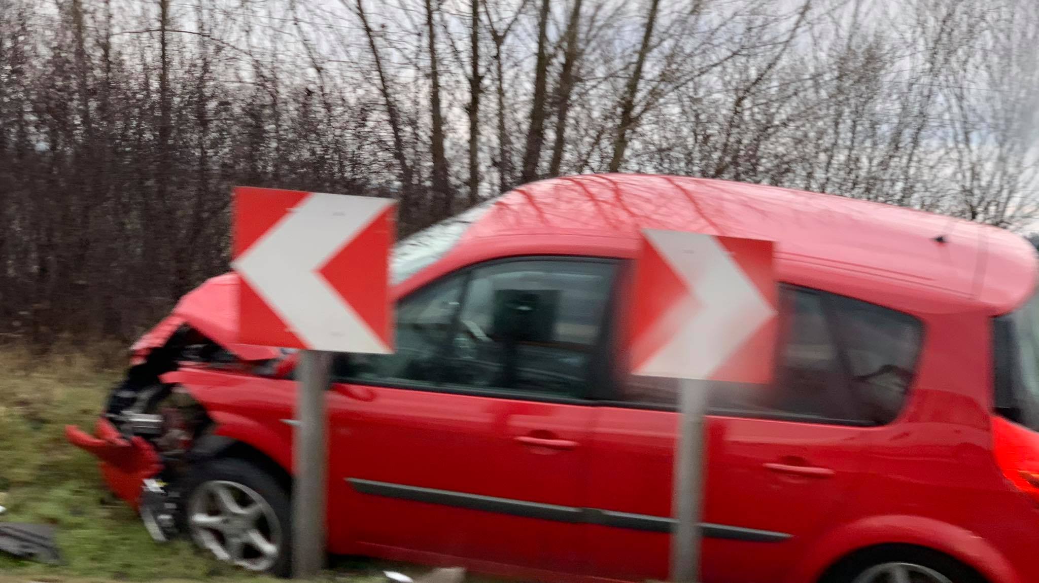 Egy piros színű, Renault típusú személygépkocsi került az árokba Borsosgyőr és Nyárád között, a mezőlaki kereszteződésnél.