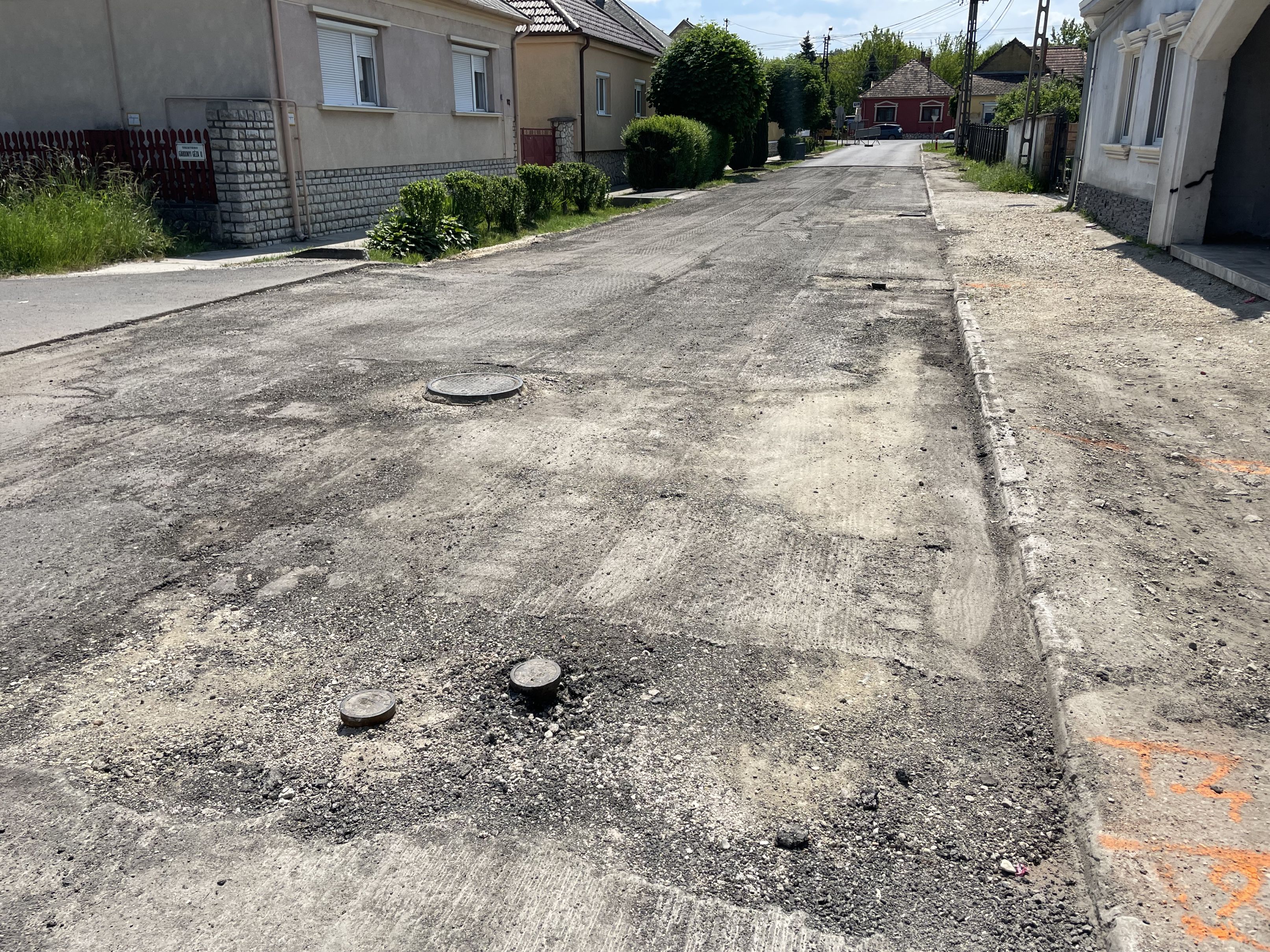A mai napon teljes útzár mellett végzik az aszfaltozást, a Szalmavári és a Gyimóti út között. A legtöbb helyen meghagyták, és nem marták fel a kifogásolt aszfaltréteget, erre húzzák rá az új, kopó aszfaltot, több helyen pedig a csatorna fedlapokat is kicserélték, majd pedig szintre emelték azokat. Várhatóan a munkálatokkal a mai napon végeznek.