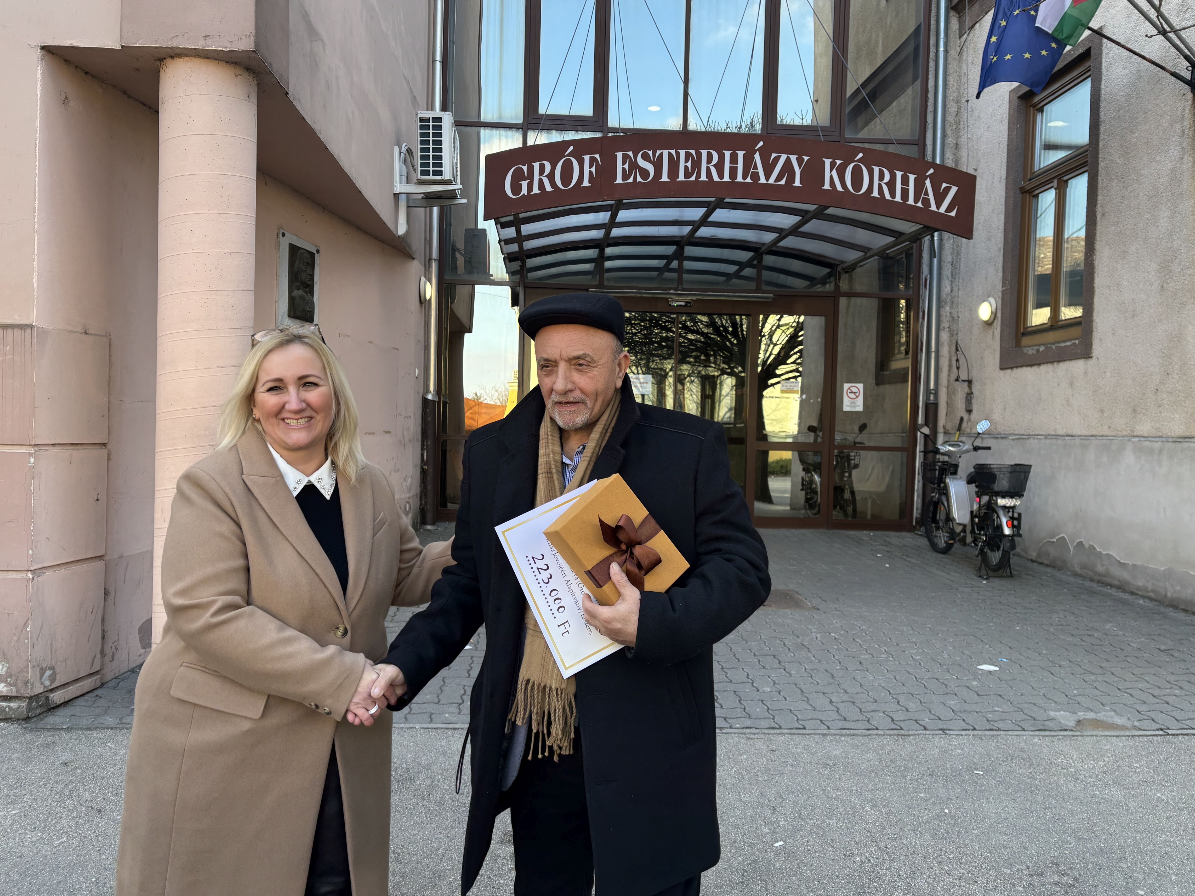 A szilveszteri tombolajegyek értékesítéséből 223 ezer forint gyűlt össze, amelyet a Gróf Esterházy Kórház Jövőjéért Alapítvány számára adott át az üzletek képviseletében Mózer Tímea.