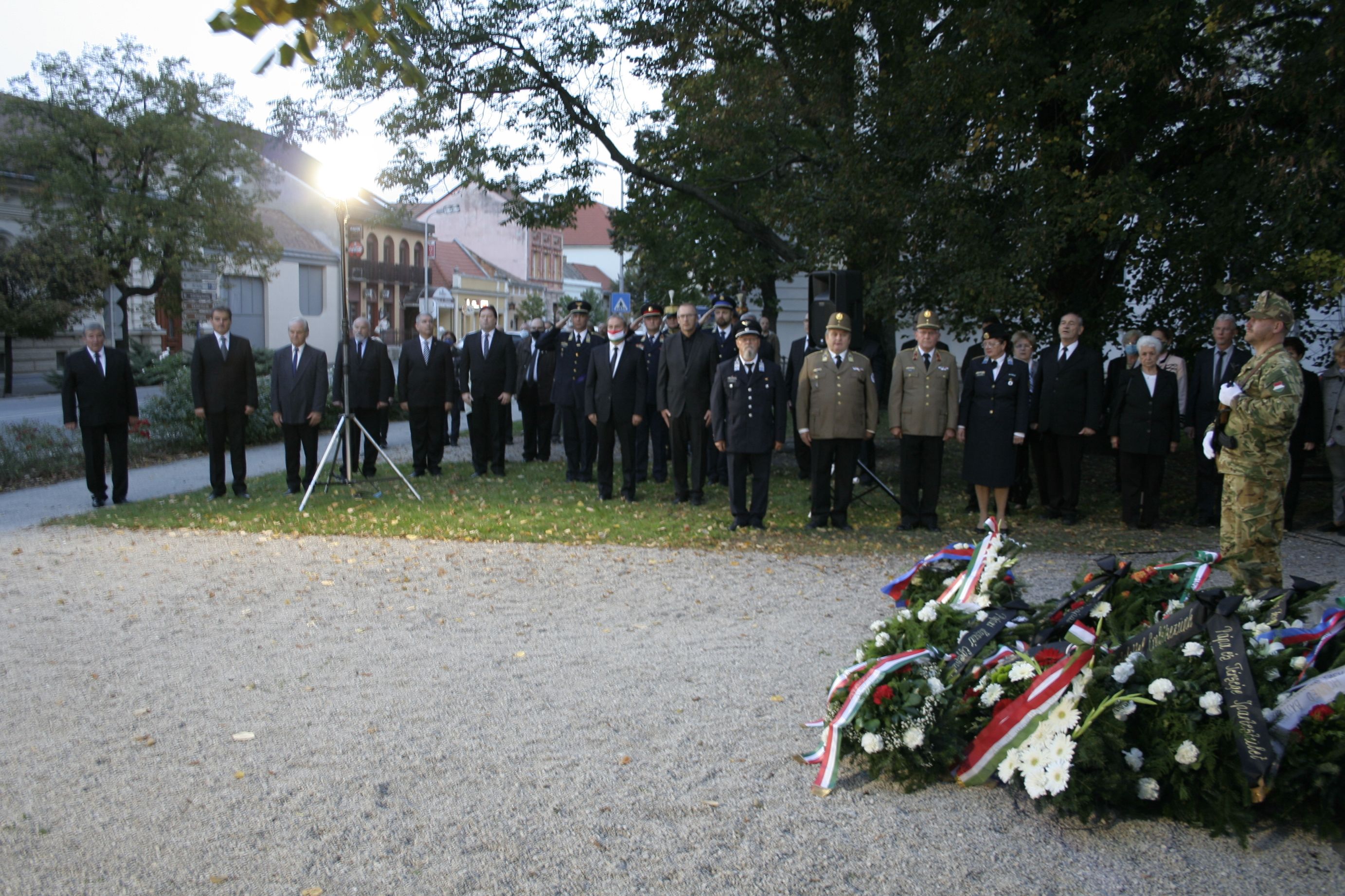 A beszédet követően az emlékezők elhelyezték a tisztelet koszorúit a Honvéd-emlékműnél. A megemlékezés a Szózat hangjaival zárult.