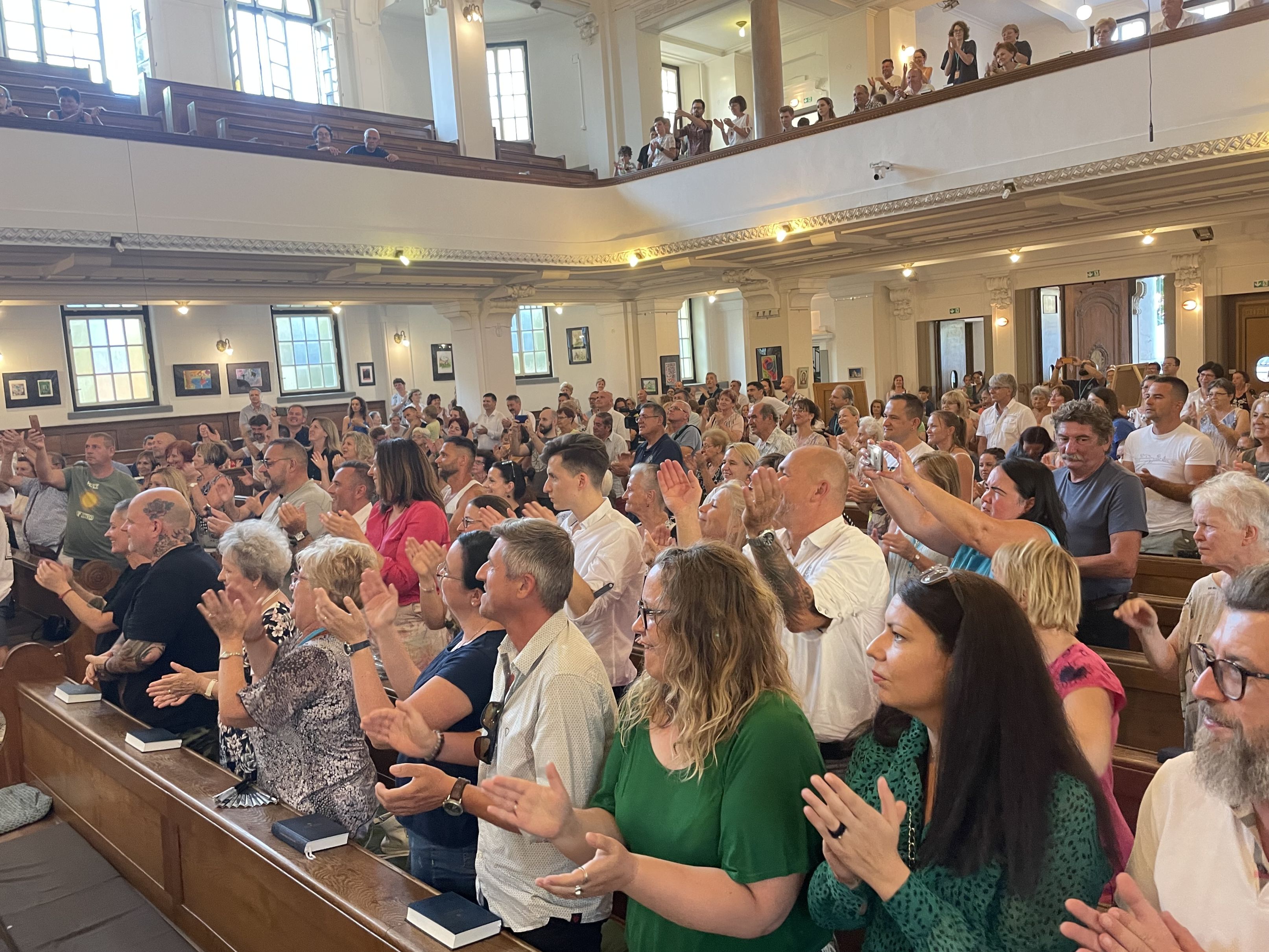 Egyáltalán nem nevezhető gyakorinak az a kép, hogy állva tapsolnak az emberek egy templomban, az Aranyakkord pápai koncertjének záróperceiben azonban erre is sor került.