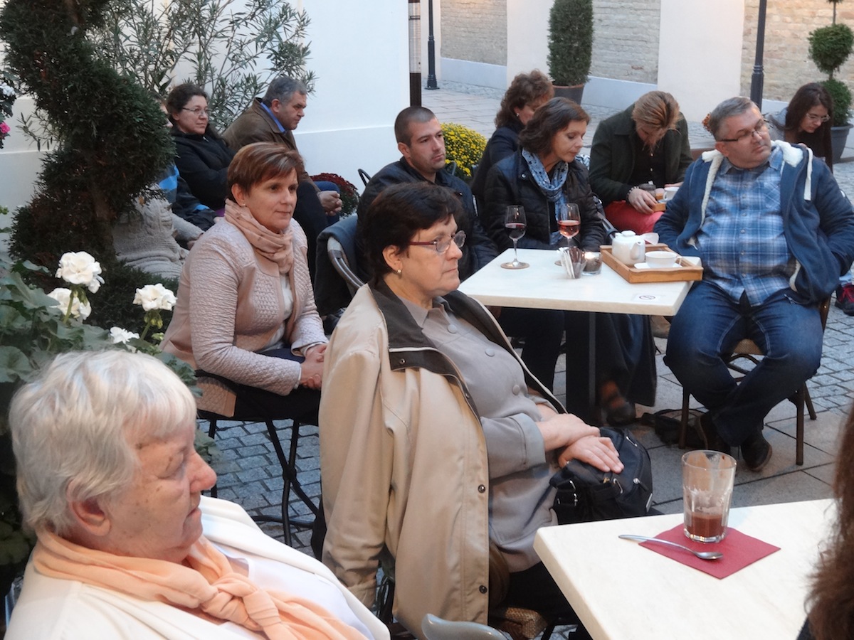 A Pannonia Reformata Múzeum és Kávézó csodálatos udvarán megtartott beszélgetésen Mátyus Alíz szociológus, a szervező Pápai Művelődéstörténeti Társaság alelnöke köszöntette a jelenlévőket és tette fel megszokottnak cseppet sem nevezhető kérdéseit. A beszélgetés elején Mátyus Alíz Köntös László, Részletek című kötetének előszavát olvasta fel, melyben Steinbach József püspök jellemzi az igazgatót. Rendkívüli embernek nevezi, abban az értelemben, hogy nem beskatulyázható. - Köntös László rendkívüliségében ott van minden korábbi rend, hagyomány, azaz örökségünk tisztelete; és mégis az azokon való túllépés, a valódi megújulás szándékával - áll az előszóban.