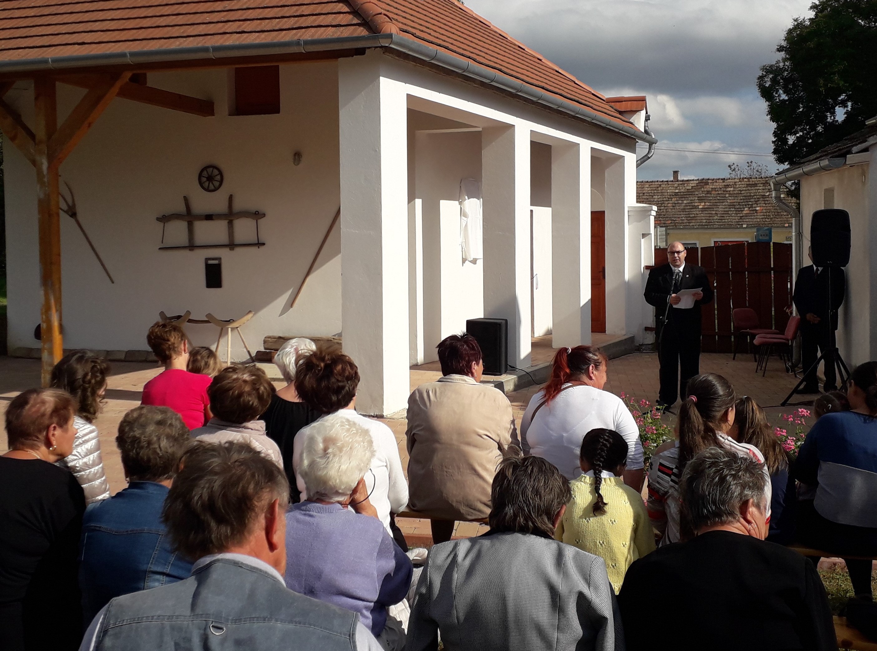 A Káldy-professzor személyes tárgyaiból, relikviáiból, valamint a helyből és a környékből összegyűjtött, megőrzött néprajzi tárgyakból berendezett Tárházat és emlékszobát Kerecsényi Zoltán, a város- és faluvédők Podmaniczky-díjasa, a Kossuth Szövetség Veszprém megyei titkára adta át ünnepélyesen a faluközösségnek, – vágta át a nemzeti színű emlékszalagokat Marics Lajos polgármesterrel.
