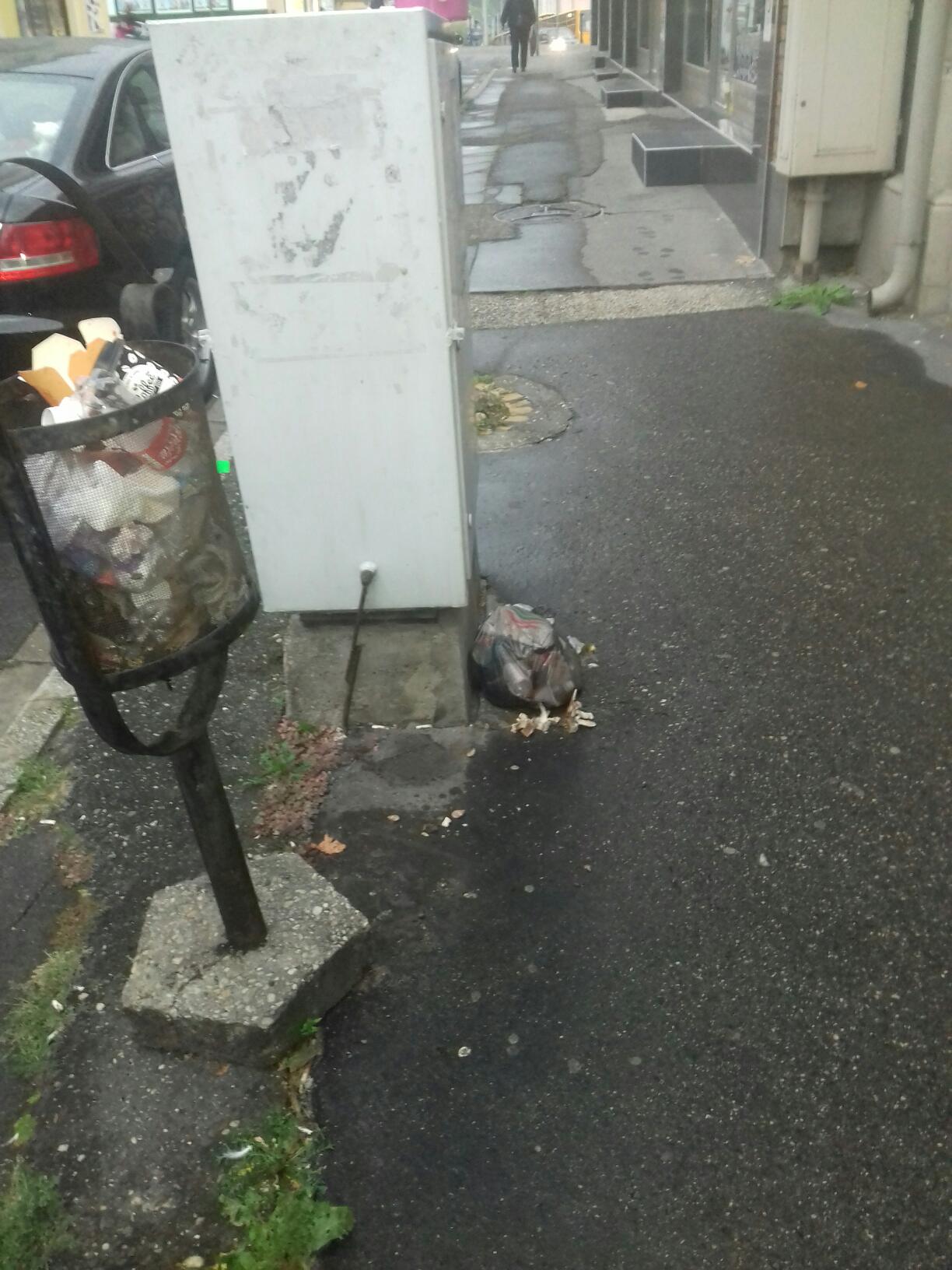 A belvárosban sajnos nem ritka látvány, hogy az utcai kukákba, vagy azok környékére hordják le többen a lakásban, vagy az üzletekben keletkező hulladékot.
