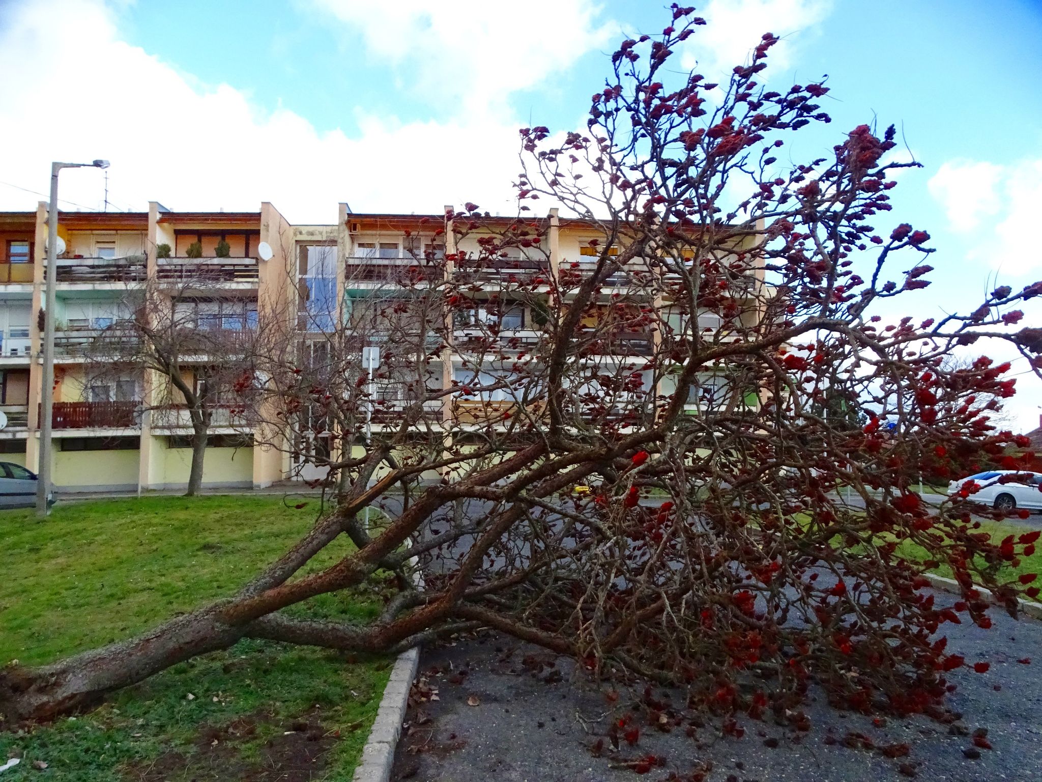 A Vajdán is kidöntött egy fát a szél, de a kis ligetben is történt hasonló eset a délelőtt folyamán.