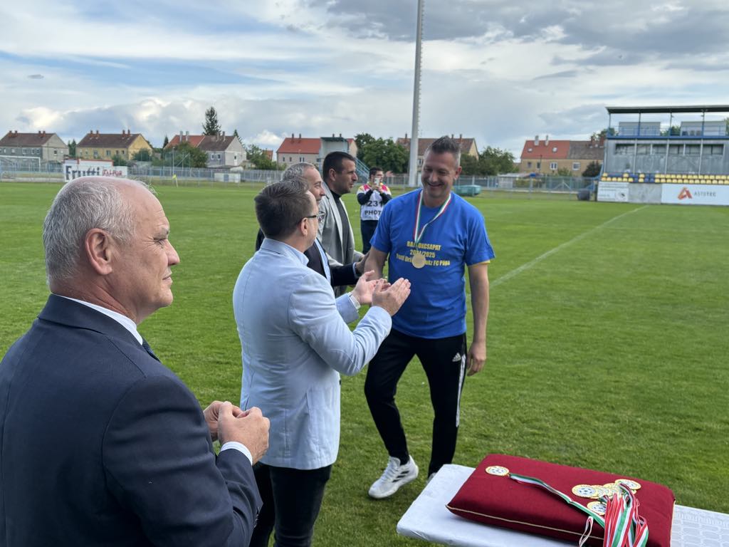 A lefújás után következhetett az ünneplés, az érmeket és a győztesnek járó serleget Kovács Zoltán országgyűlési képviselő és Finta Péter, a MLSZ Veszprém Vármegyei Igazgatóság vezetője adta át, a bajnokcsapat tagjainak Grőber Attila polgármester is gratulált.