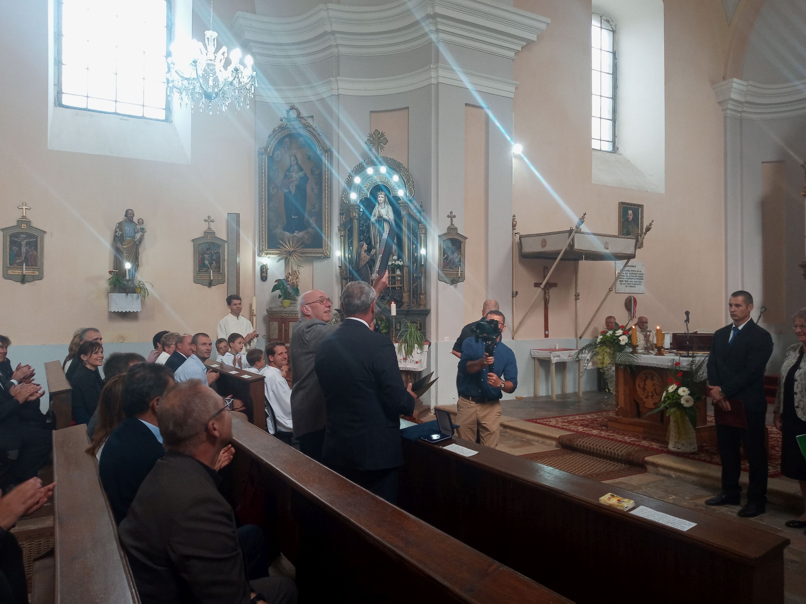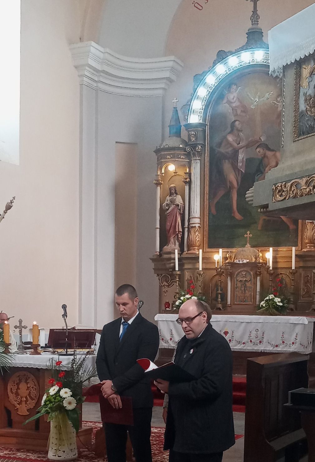A múlt hétvégén vármegyénk északi részén, a Bakonyalja lankái között fekvő Bakonyszentiván Keresztelő Szent János templomában, a Dékány Árpád Sixtus OCist emeritus zirci apát atya által celebrált szentmise keretében avatták a település díszpolgáraivá a helybéli Földing Ernő lokálpatriótát és dr. Kovács Zoltán országgyűlési képviselőt. Mindketten köztiszteletet, megbecsülést és szeretetet élveznek Pápa környékén.