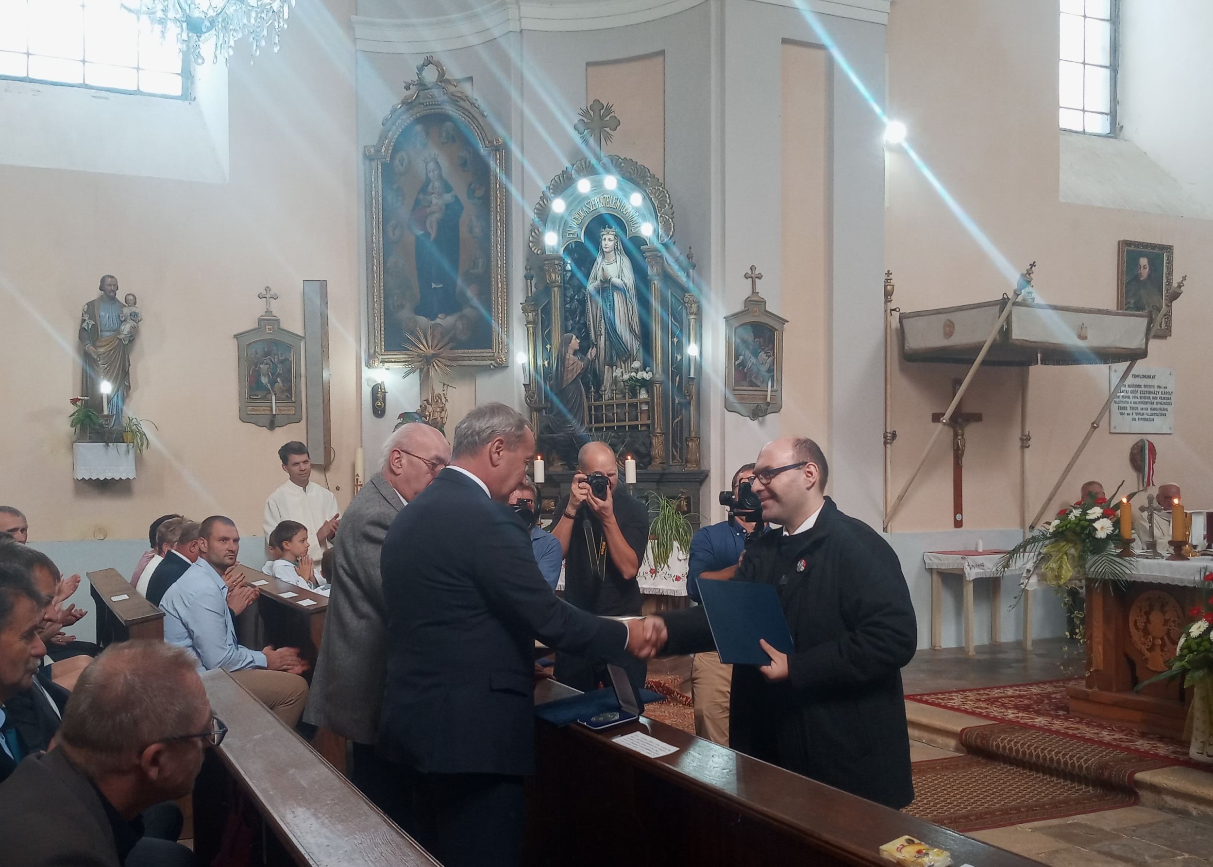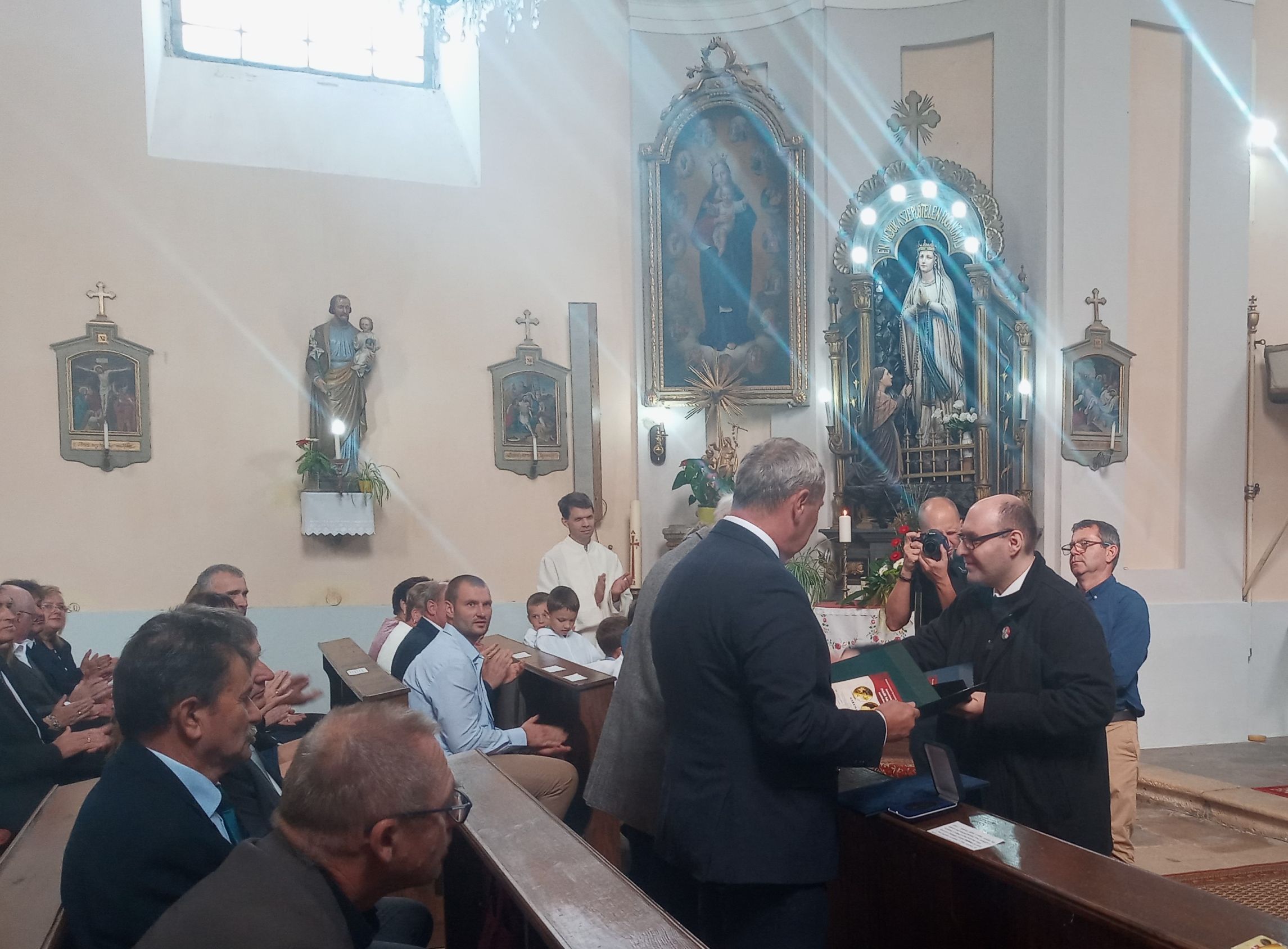 A díszpolgári címek mellé én az idén harmincéves Kossuth Szövetség nevében, annak Veszprém vármegyei csoportja képviseletében egy-egy emléklapot és sorszámozott Petőfi 200 aranyérmet nyújtottam át a számukra a kossuthi, civil hagyományőrzés segítéséért.