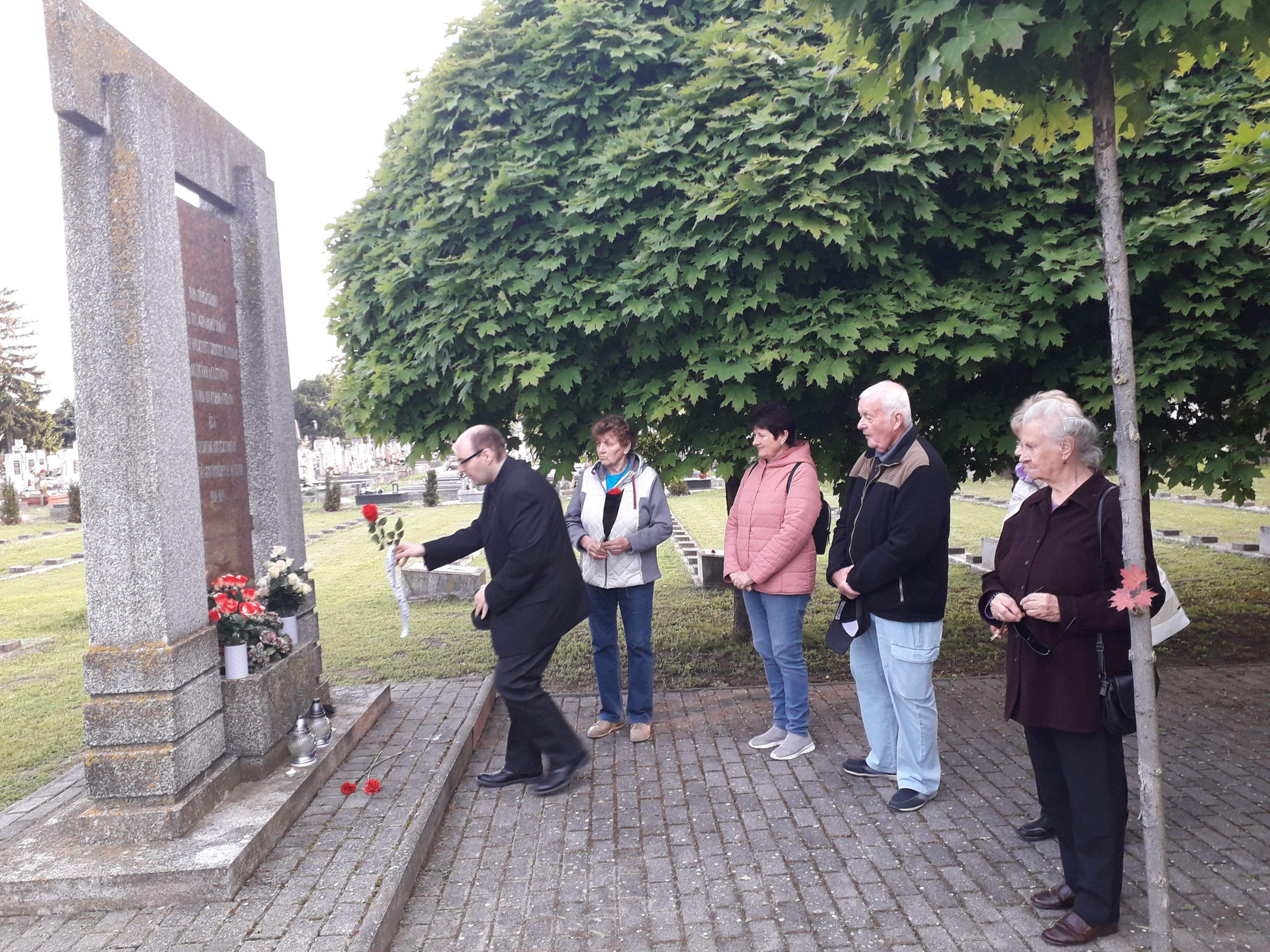 Az idei, május 8-i, pápai tisztelgők mécseseket gyújtottak és virágszálakat helyeztek el a magyar, a szovjet, a német katonai mementóknál. Innen elsétáltak a húsz esztendeje elhunyt Szóllás László (1930–2003) pápai helytörténetkutató, fotóriporter, rádiótudósító, klubvezető, tolmács, a népek közötti béke néhai helyi fáradhatatlanja nyugvóhelyéhez is, ahol szintén a kegyelet virágát helyezték el – akiről pápai Petőfi Városbarát Egyletünk (PVE) idén külön is meg szeretne majd emlékezni egy ankét keretében.