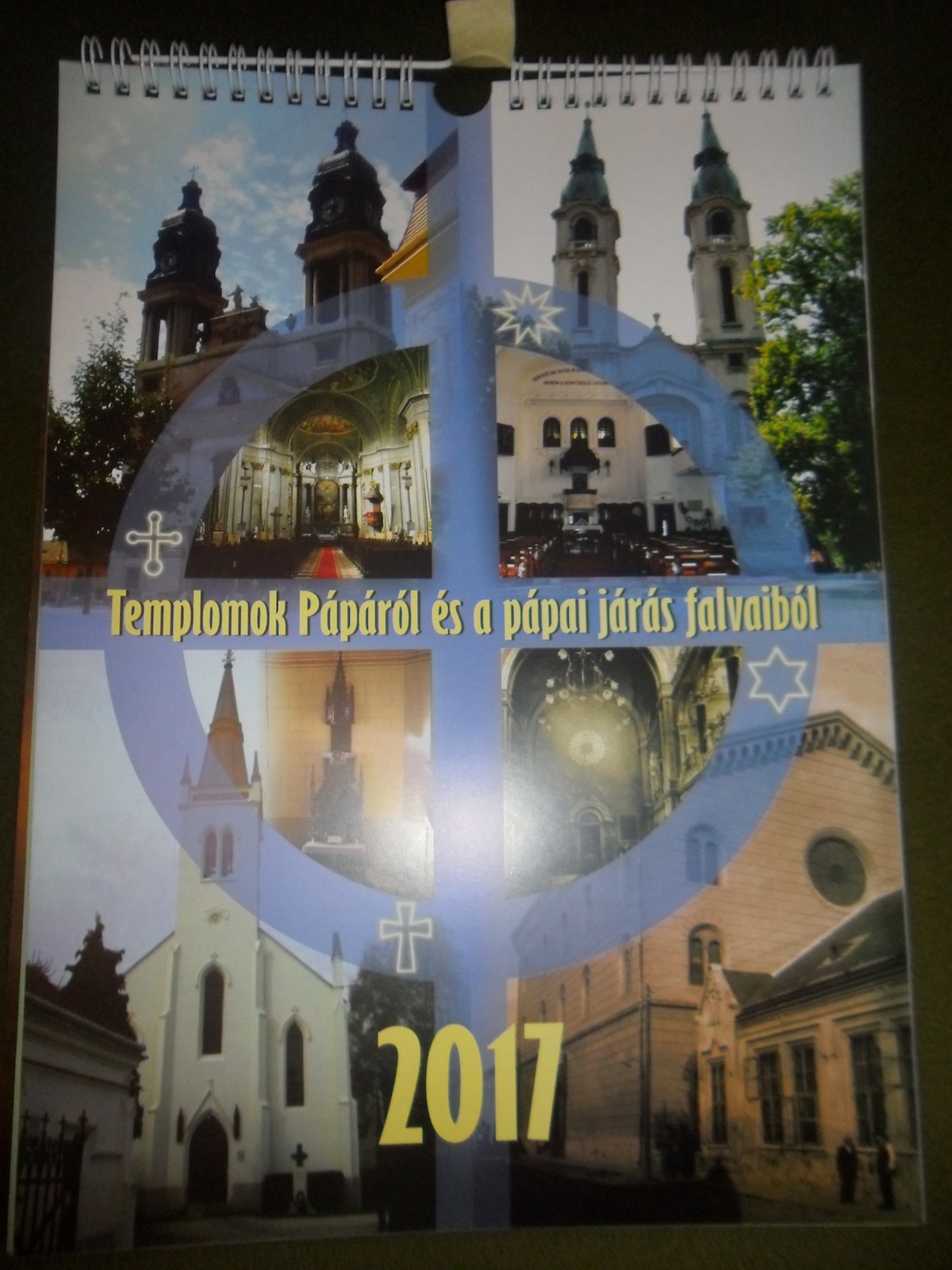 A városi könyvtár kiadásában eddig megjelent városi falinaptárak eddig a pápai és a környező falvak épületeit, utcarészleteit mutatták be. A 2017-es kiadványban a templomok kaptak fő szerepet. A címoldalon a négy felekezet látható: katolikus, református, evangélikus és izraelita. - A naptár 12 hónapon keresztül mutatja be a pápai és a pápai járás falvainak néhány templomát. A pápaiak közül a Kastélykápolna, a Református ótemplom, az Evangélikus templom, a Zsinagóga látható, illetve Kemeneshőgyész, Kemenesszentpéter, Bakonyjákó, Homokbödöge, Németbánya, Pápadereske, Gic, Farkasgyepű templomai szerepelnek a naptárban. A naptár utolsó előtti oldalán szerepel a naptárban felhasznált képek fotósainak neve. Az utolsó oldalon Ürmös Lóránt gyűjteményéből láthatóak régi képeslapok a pápai járás templomairól - mutatta be a falinaptárt Polovitzerné Antal Mónika könyvtáros.