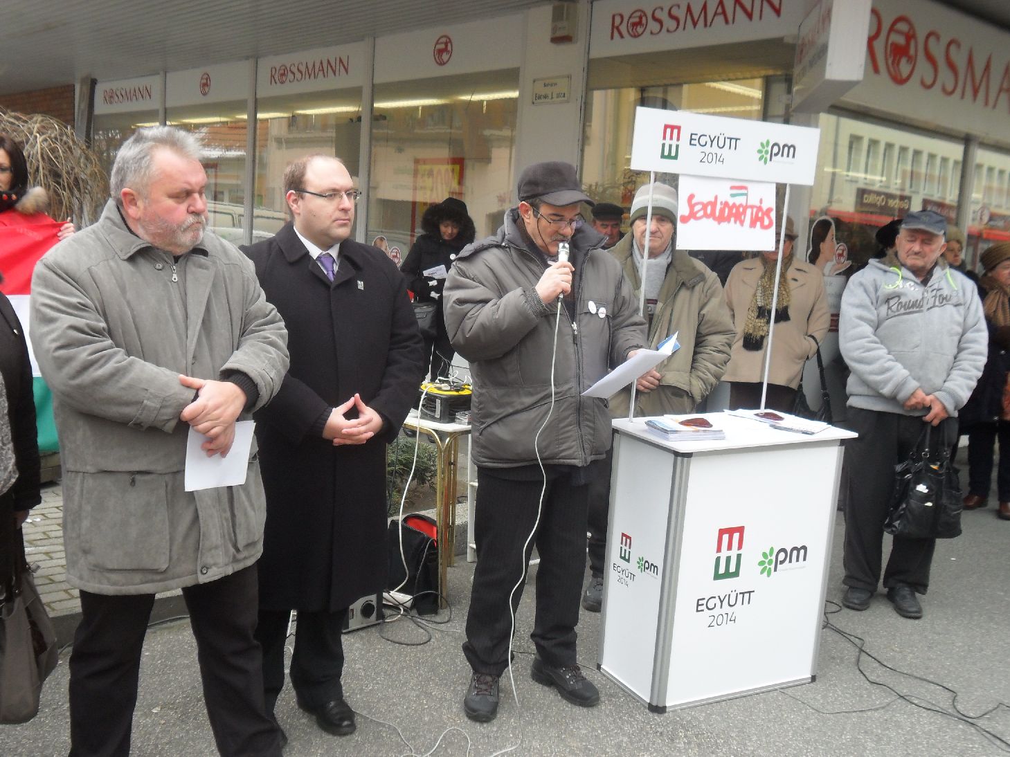 Grőber Attila, az MSZP helyi elnöke a demokrácia fontosságát hangsúlyozta. Mint mondta, a rendszerváltáskor nem egy ilyen országot képzeltek el az emberek, "út közben valami elromlott". A jelenlegi berendezkedést plázademkráciának nevezte. Szerinte az Orbán-kormány a lelkek megvásárlásával kormányoz, hiányoznak az önálló gondolatok, a tett és az autonómia. - A demokrácia több mint köztársaság. A demokrácia életforma, magatartásforma. Annak a tiszteletben tartása, hogy a többségnek nincs mindig igaza. Elfogadni másokat még akkor is, ha kevesebben vannak - mondta Grőber Attila.