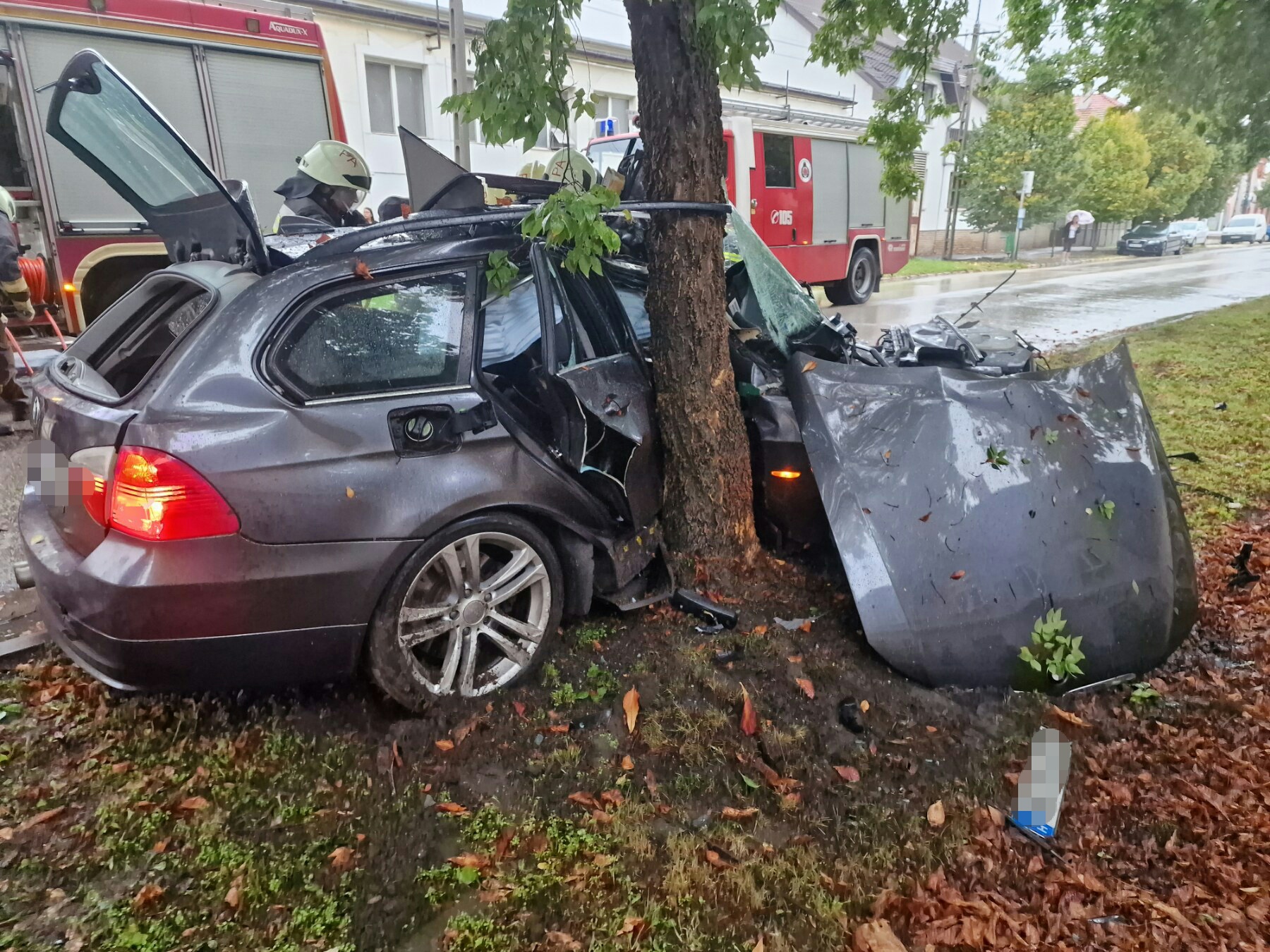 Csúnyán összetört az autó, miután fának csapódott a Kisfaludy utcában