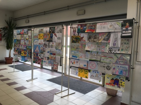 Az Országos Balesetmegelőzési Bizottság által meghirdetett A mobil várhat?! elnevezésű felmenő rendszerű közlekedésbiztonsági rajzpályázat díjátadó ünnepségét a Munkácsy Mihály Német Nemzetiségi Nyelvoktató Általános Iskola aulájában tartották a pápai rendőrök 2019. május 29-én.