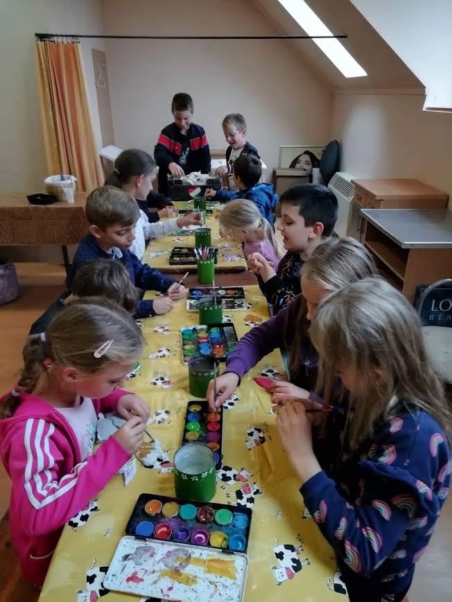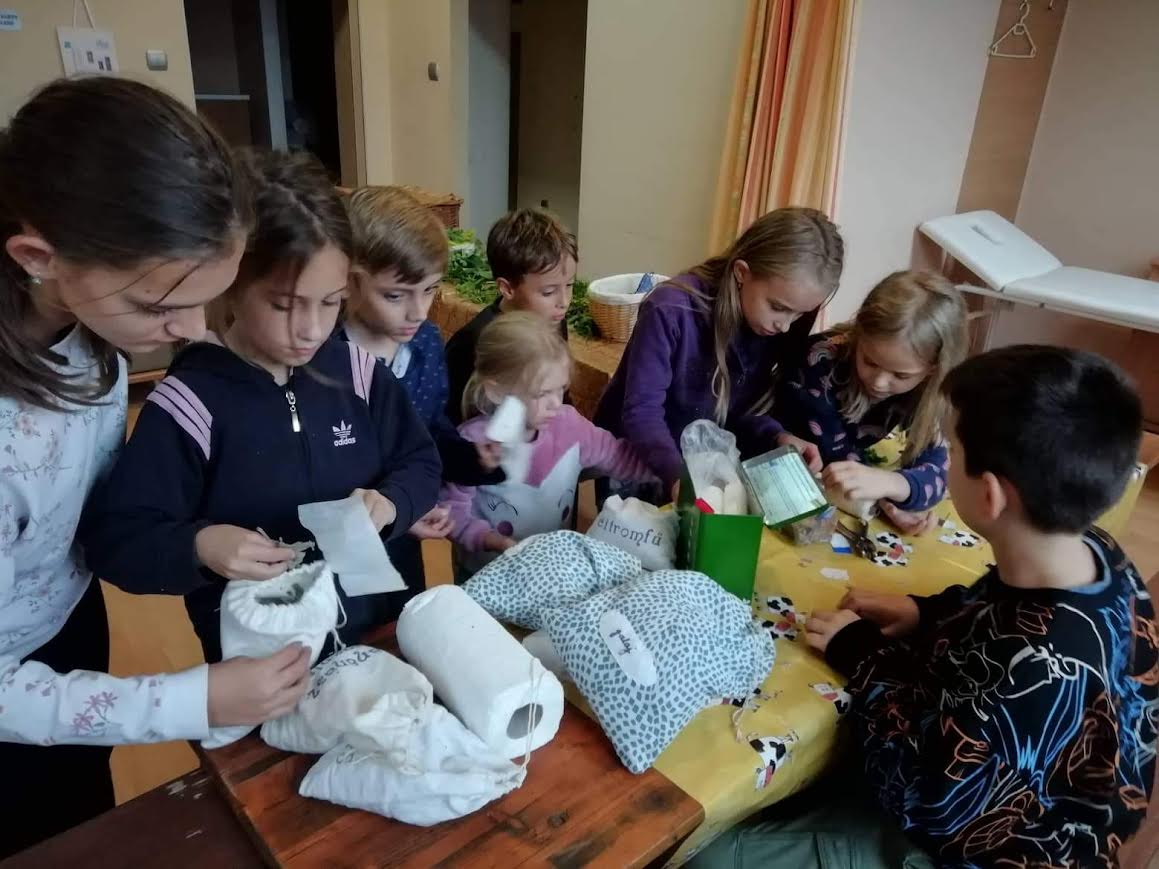 A gyerekek egy külön teremben, Sós Mari „boldogságtalálóval”, a Döbröntei Szarvaskör Egyesület elnökével gyógynövényekkel ismerkedtek, gyógynövényes teafiltert készítettek, levendula párnácskát varrhattak, kézműveskedtek: gipszmintákat festettek.