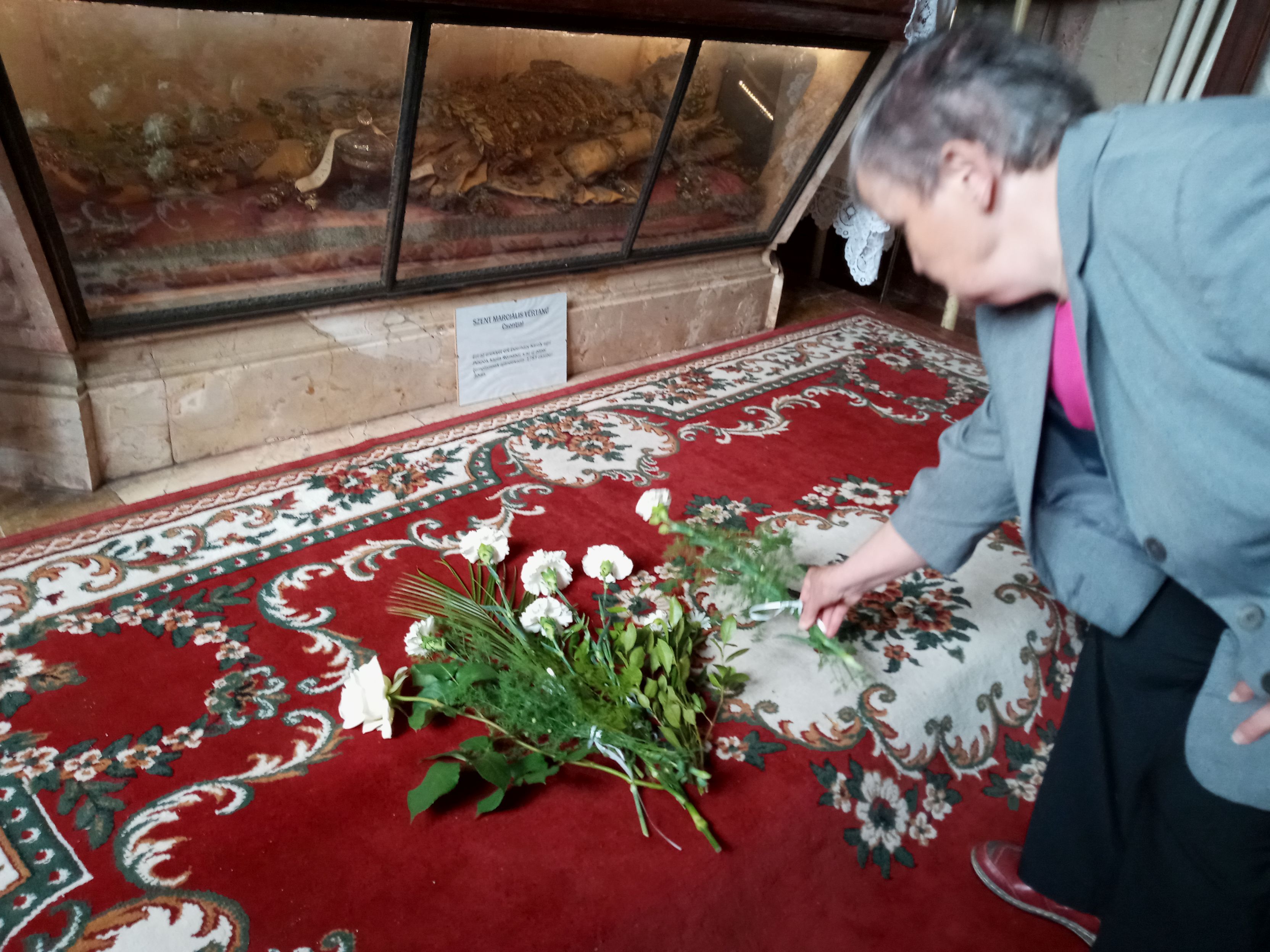 A PVE önkéntesei a reményt, a békességet, a tisztaságot jelképező fehér színű virágokat helyeztek el a 240 éve Pápára került, üvegkoporsóban nyugvó mártír légionárius földi maradványainál.