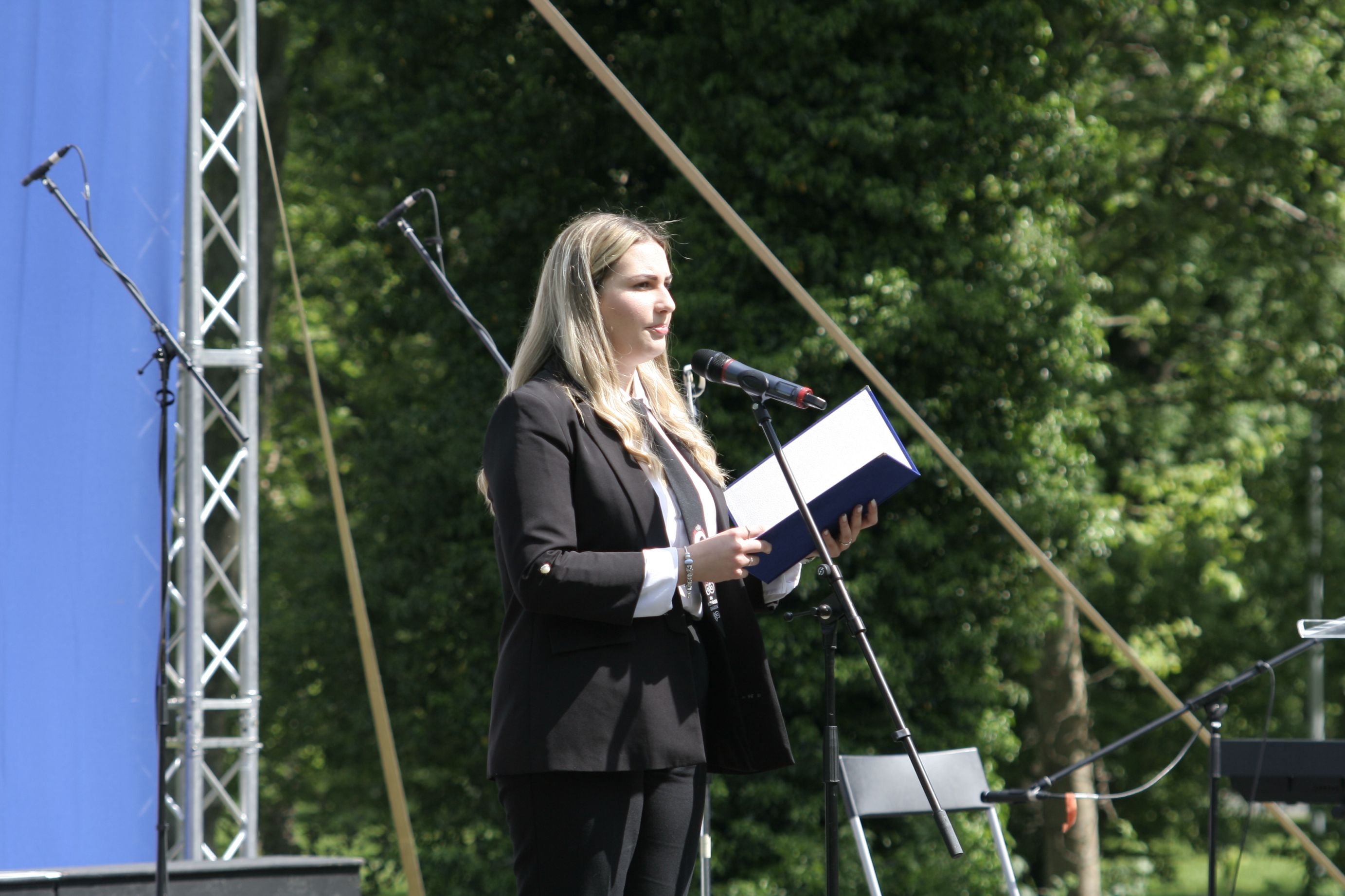 A diákok nevében Kulcsár Anna, a Pápai Református Kollégium Gimnáziuma és Művészeti Szakgimnáziuma tanulója búcsúzott. A diák köszönetet mondott tanáraiknak és családtagjaiknak, hogy támogatták őket a diákévek során, valamint búcsúzott a várostól is, annak lakóitól, utcáiktól, közléitől, kávézóitól.