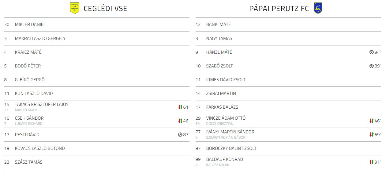 A második félidőben sem forogtak sokszor veszélyben a kapuk, a ceglédi honlap két hazai helyzetről számol be. Amikor már mindenki azt gondolta, hogy hosszabbítás fog következni, a meccs hajrájában felgyorsultak az eseménye. A 87. percben Pesti révén megszerezte a vezetést a hazai csapat, ám nem sokáig örülhetett a ceglédi publikum. Két perc sem telt el és a Pápa egyenlíteni tudott Szabó Zsolt találatával, majd egy kapu előtti kavarodást követően a 92. percben tizenegyest ítélt a játékvezető. A büntetőt Hanzl Máté értékesítette, így a néhány perccel korábban még kiesésre álló pápaiak örülhettek a végén. Csapatunk továbbjutott a Magyar Kupában.
