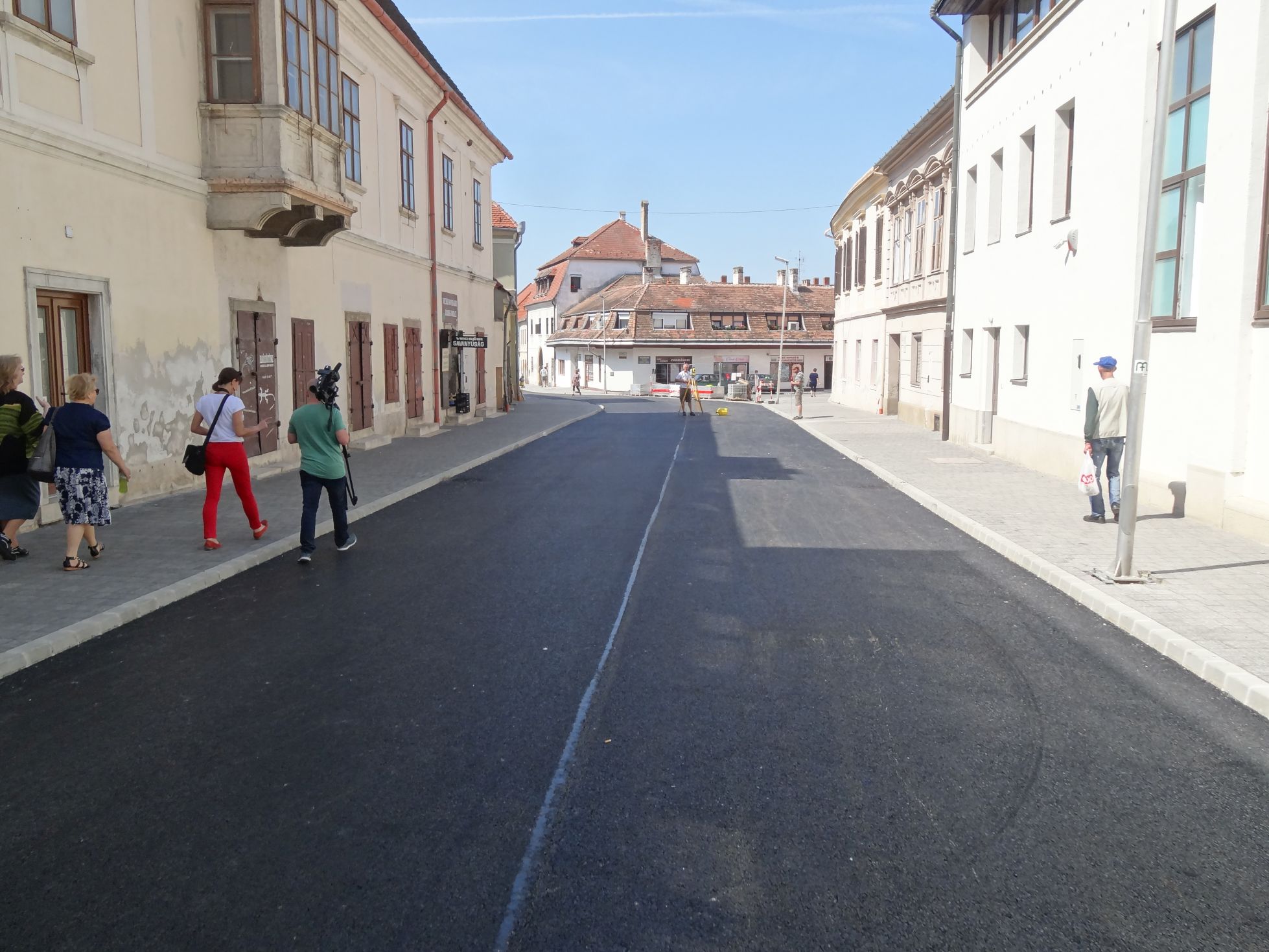 A hét elején készült a felső, úgynevezett kopó aszfaltréteg az utcában, a Fő tér és a Bástya utca között. Ezen a szakaszon végzik el az utolsó simításokat, mielőtt - korlátozásokkal ugyan - de megnyitják a forgalom számára.