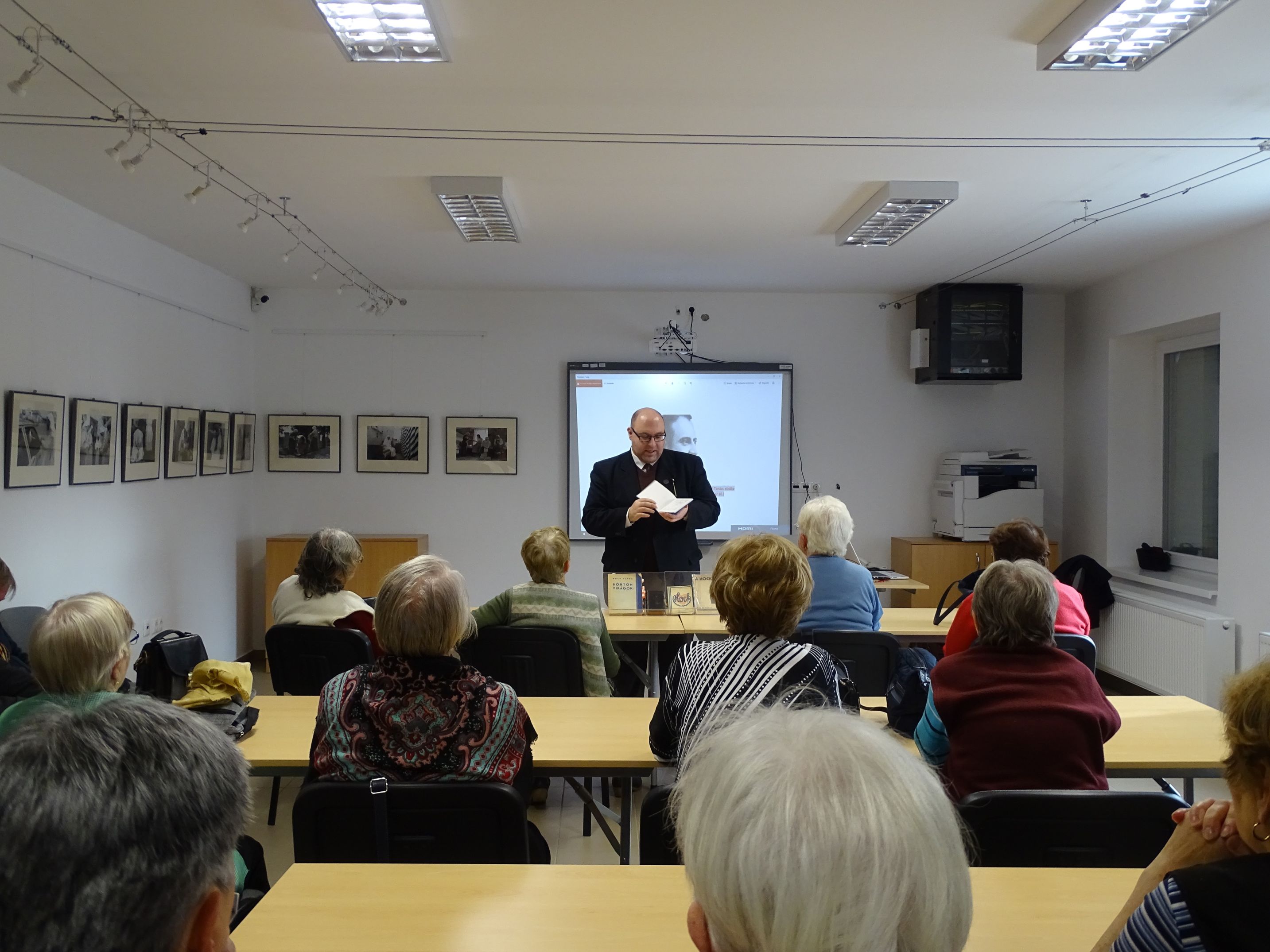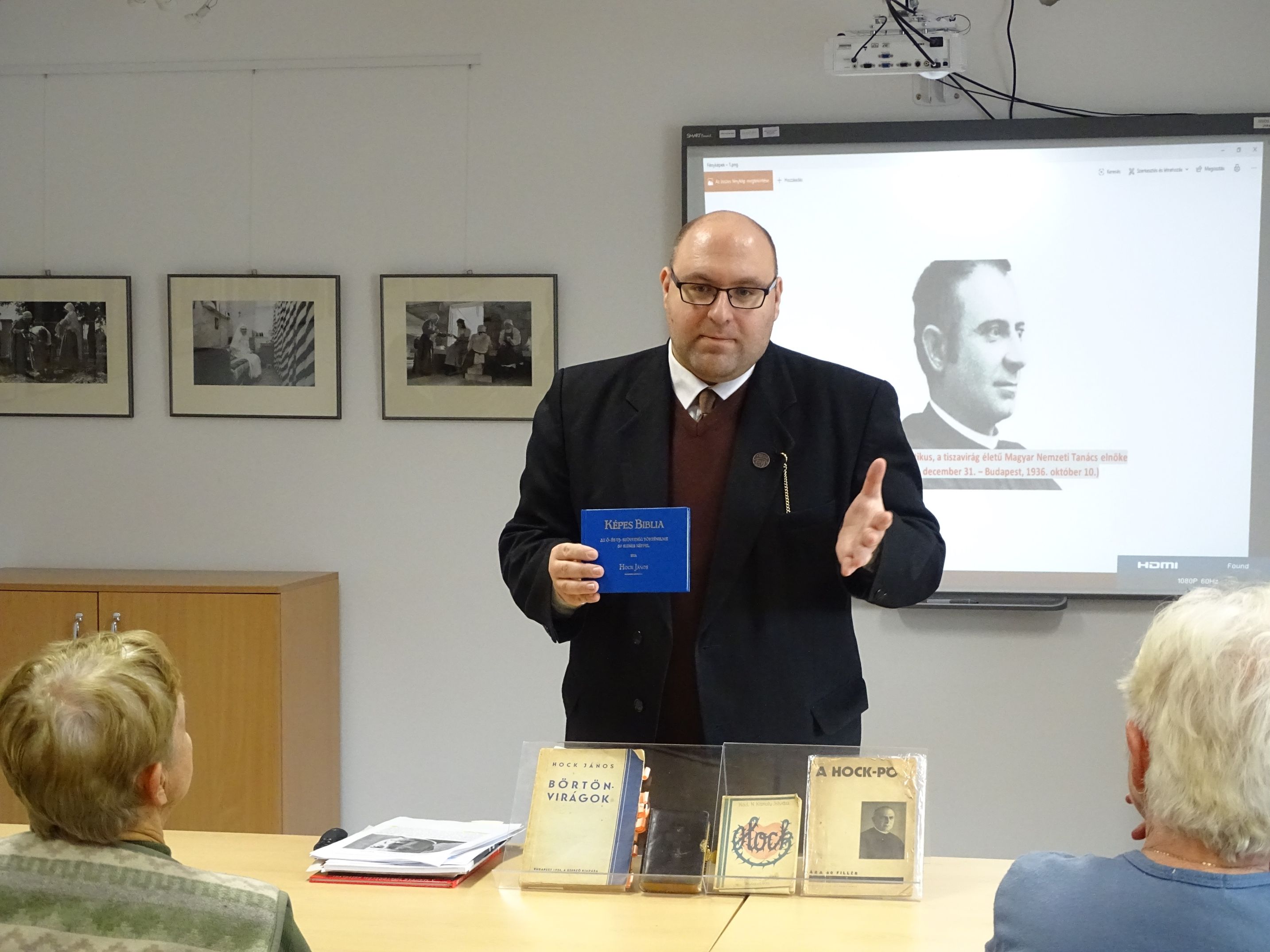 Az előadó a történelmi személyiség születésének 160. évfordulója kapcsán, a múlt év végén már készített oldalunkon egy tartalmas összeállítást, azonban mostani, február 19-i előadásában – melyet a helyi honismereti klub, illetve az EpVE megjelent érdeklődői előtt tartott a városi könyvtárban – rendhagyó módon vetített képekkel, valamint a saját maga által gyűjtött, tulajdonában őrzött eredeti dokumentumok bemutatásával ismertette Hock János életpályáját, munkásságát. Előadását a hamarosan, az idei húsvétra megjelenő, Hockról szóló kis kiadványának ízelítőjéül szánta hallgatósága figyelmébe. Kerecsényi Hock alakjának, emlékének tisztelője. Nem véletlenül, hiszen élete első Bibliája gyermekkorában az a kicsiny méretű Képes Biblia volt, amit még Hock készített 1900-ban. S a közelmúltban Hock János Beszélgető és Jótékony Csoport néven civil kisközösséget is szervezett.