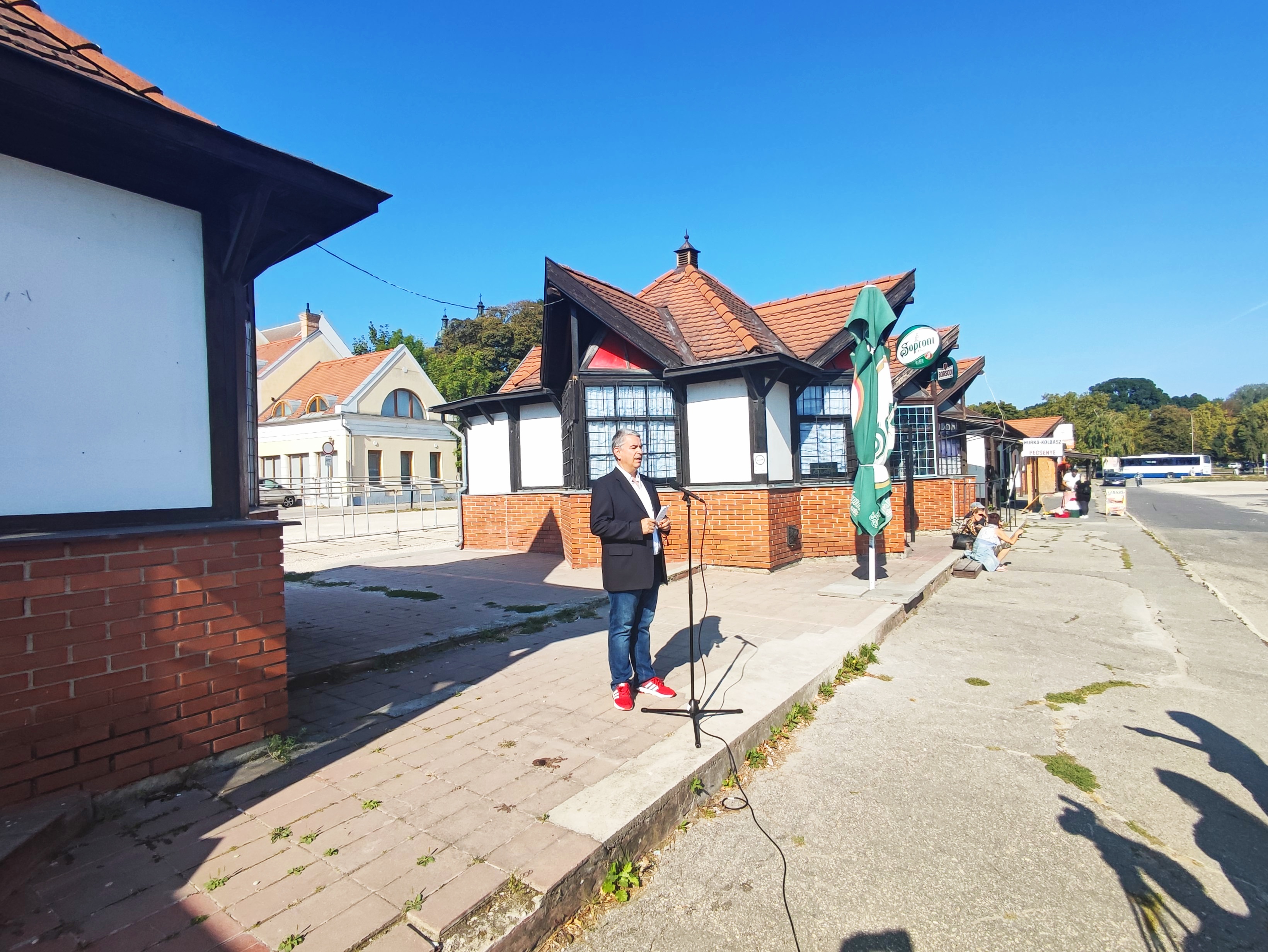 Kovács József, a Veszprém megye 04-es számú választókerületének Helyi Előválasztási Bizottság elnöke a pápai helyszínen, a Piac téri 2-es és 3-as pavilon közötti területen tartott ma sajtótájékoztatót, pontosan azon a helyszínen, ahol hamarosan fel fogják állítani az előválasztási sátrat.
