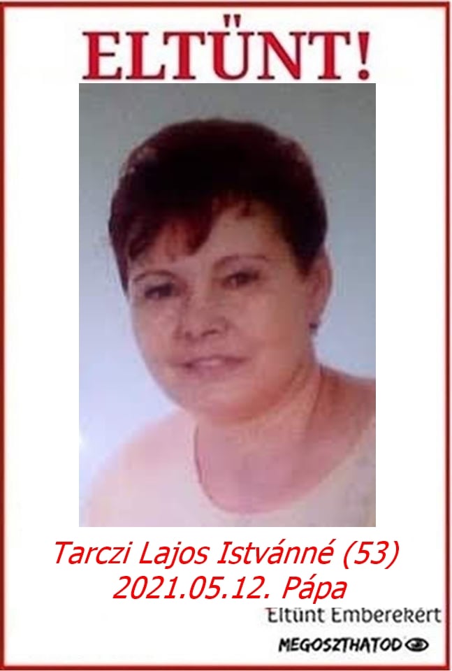 Tarczi Lajos Istvánné 53 éves pápai lakos, Celldömölkről szerdán még adott életjelet magáról, azóta semmit nem tudnak róla.