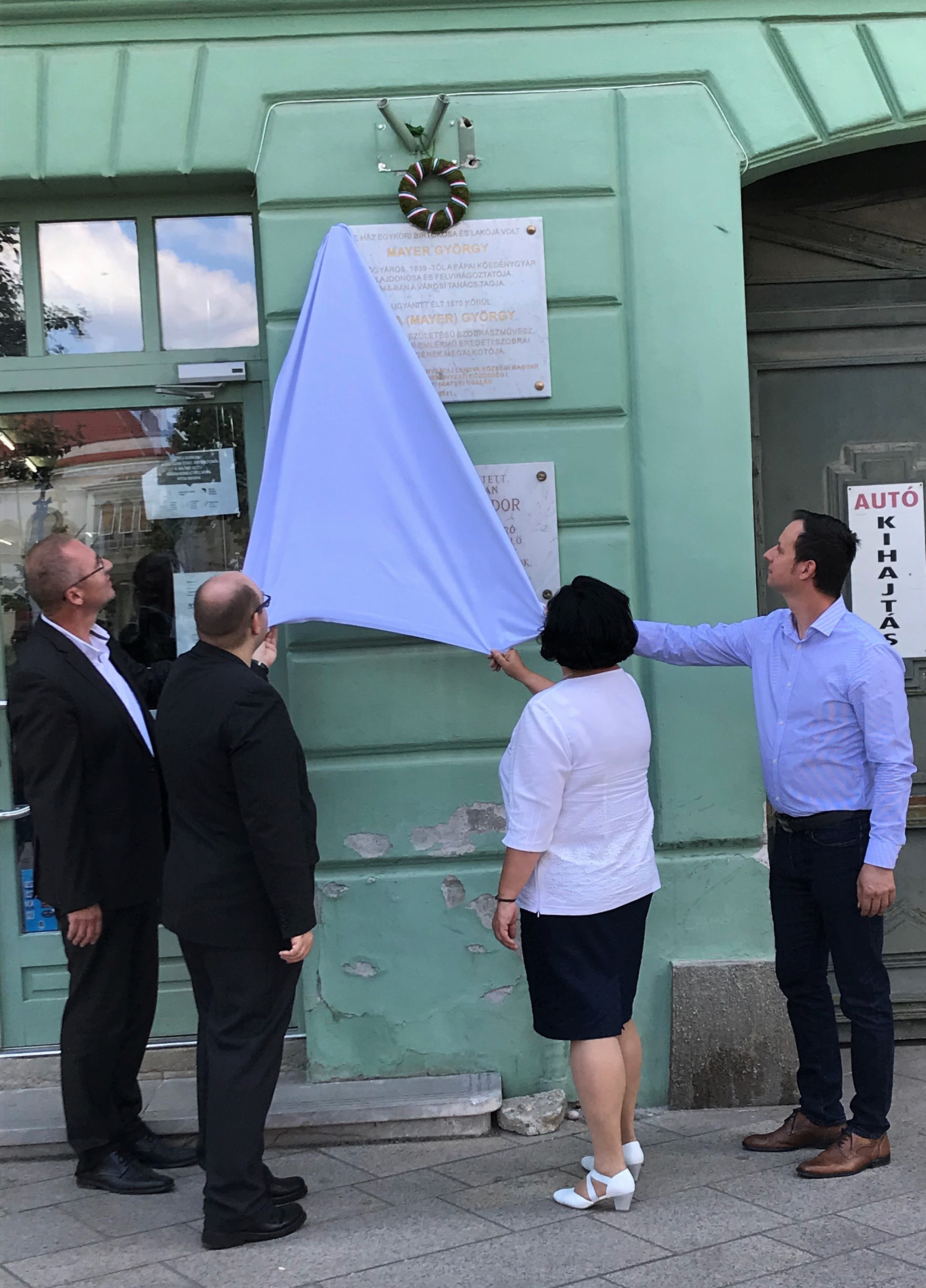 Hiánypótló emlékjelet készülünk leleplezni, itt, a pápai városközpontban, a Mayerék korában „Főpiacként” is emlegetett pápai Fő téren. A tábláért nagy köszönet Zala György szobrászművész oldalági leszármazottjának, dr. Mezőhegyi Gergő úrnak és Pápa város vezetőjének, dr. Áldozó Tamás polgármester úrnak.
