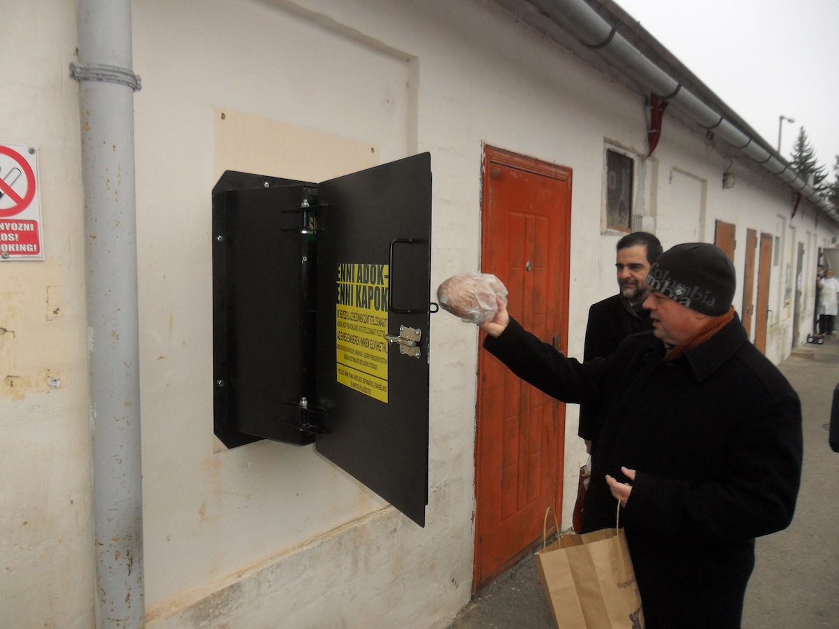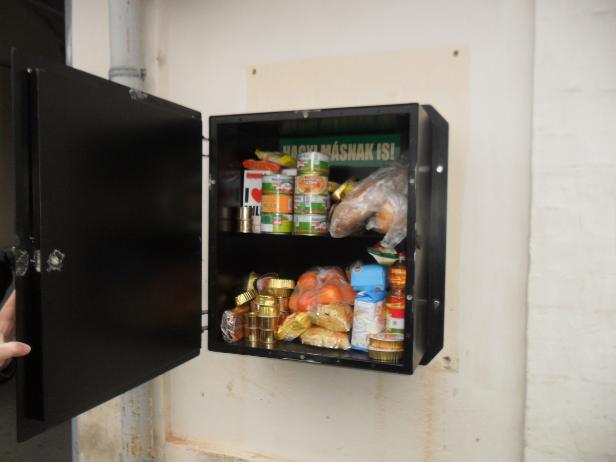 Egy mindig nyitva lévő szekrényt helyeztek el a pápai Piac épületének falára, ahová bárki bármikor betehet, vagy kivehet tartós élelmiszert. Az adománydobozt a történelmi felekezetek hozták létre.