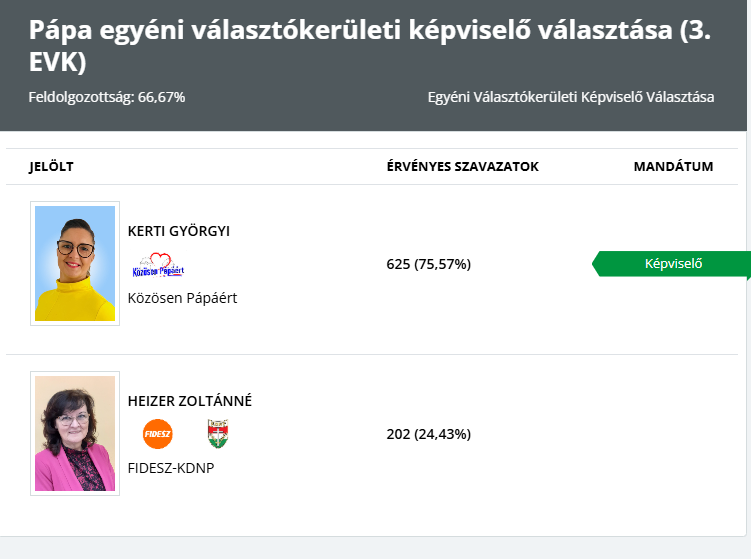 A választás előtti elemzésünkben azt írtuk, hogy egyértelműen Kerti Györgyinek. Tavaly júniusban ugyanis szignifikáns különbséggel nyert itt Grőber Attila, a kérdés az volt, hogy fontosnak érzik-e a választói, hogy elmenjenek voksolni. Úgy tűnik, fontosnak érezték. Azt nehéz elképzelni, hogy többszáz Grőber szavazót sikerült a Fidesznek meggyőznie, az előjelek tehát Kerti Györgyi jó szereplését vizionálják, még akkor is, ha a Fidesz is jól mozgósított.