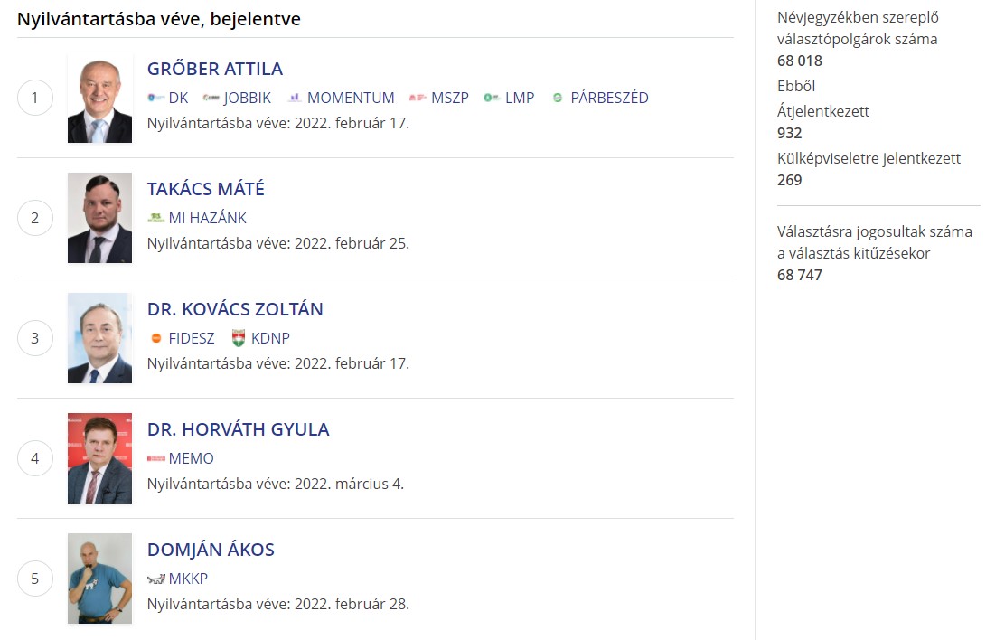 A pápai központú Veszprém megye 4-es számú választókerületben öt egyéni jelöltre lehet szavazni: