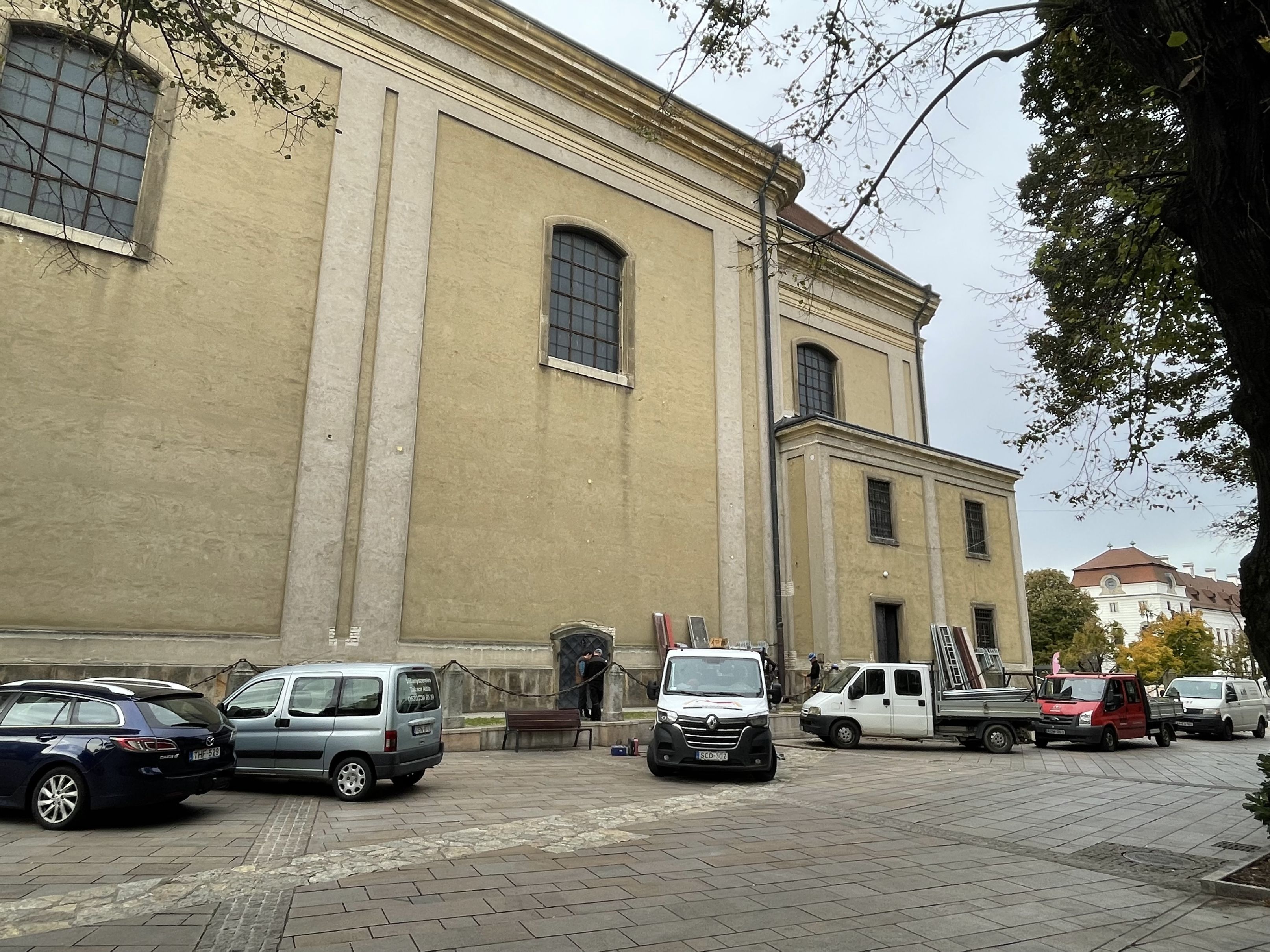 Az épület Plébániasor felőli oldalán kezdték meg a szakemberek az állványzat megépítését, amely miatt fokozott óvatosságra kérik a közlekedőket.