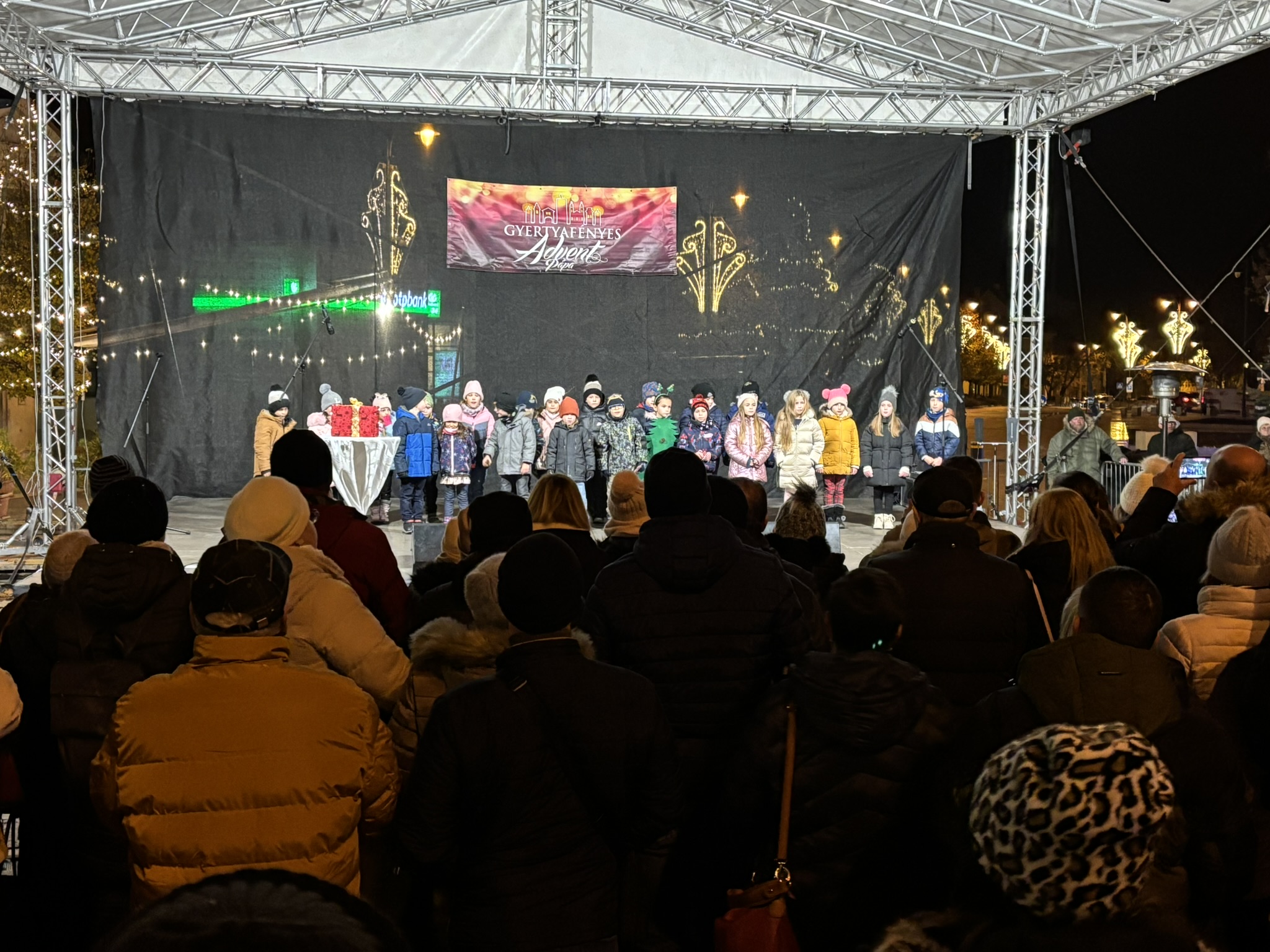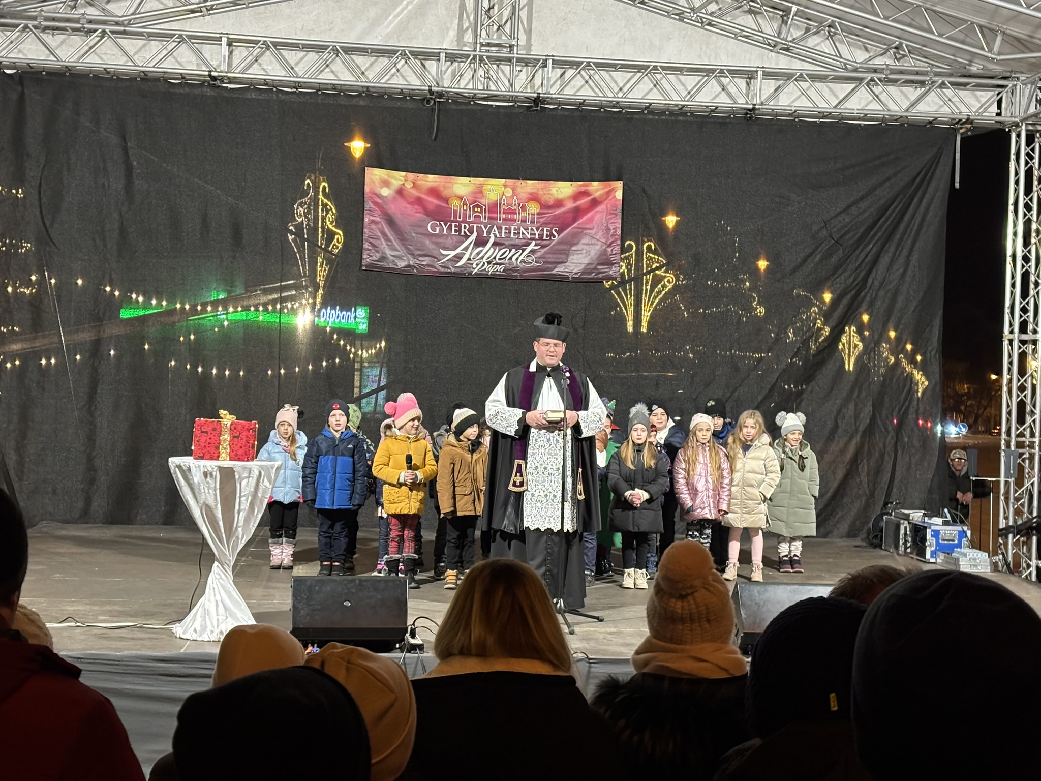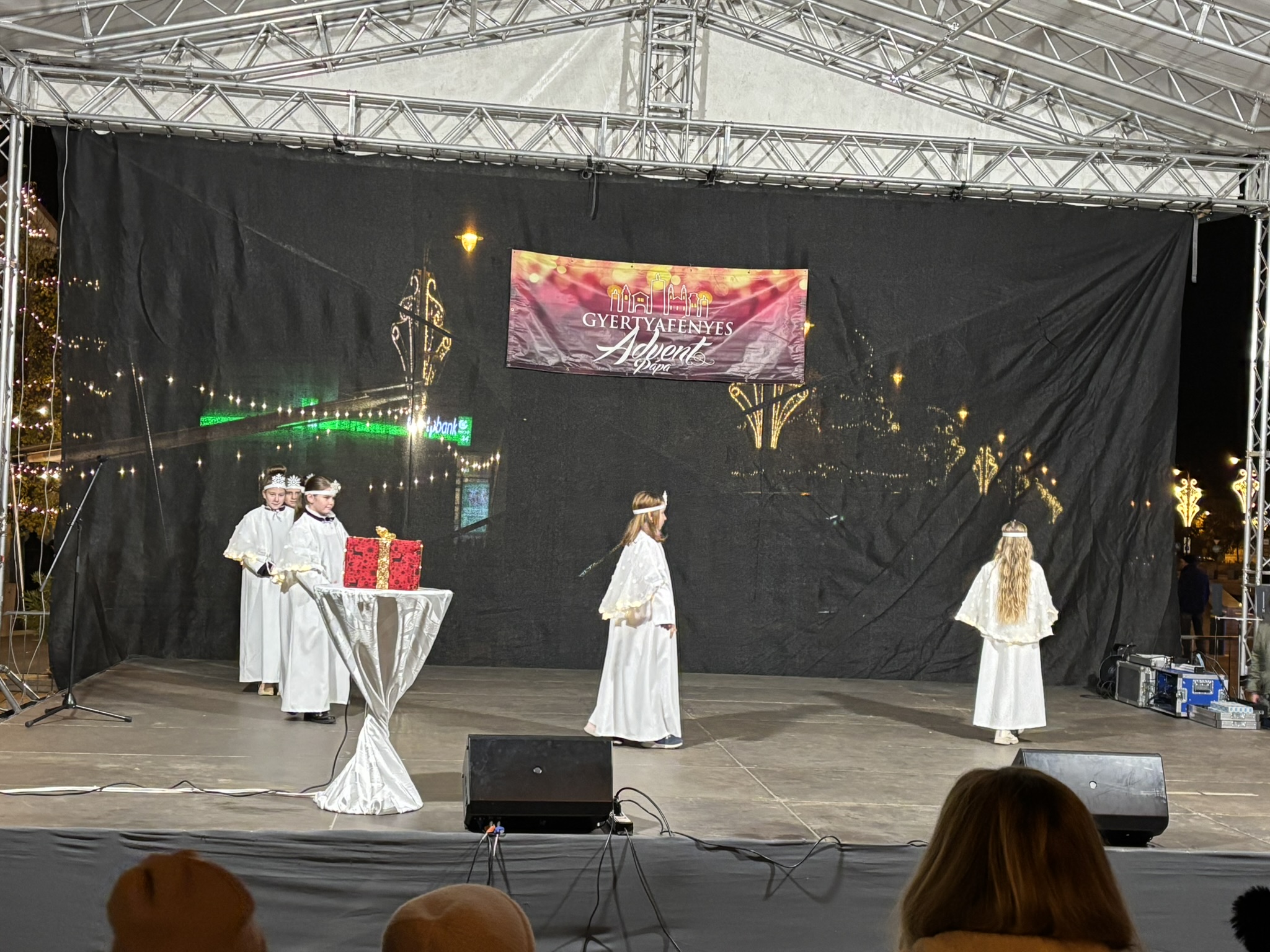 A szép számú ünnepváró közönséget Vadász Krisztina alpolgármester köszöntötte, majd pedig Cséry Gergő katolikus plébános tartott rövid igehirdetést. Advent első vasárnapján a Szent István Római Katolikus Általános Iskola elsős és negyedikes diákjainak műsora volt látható a színpadon.