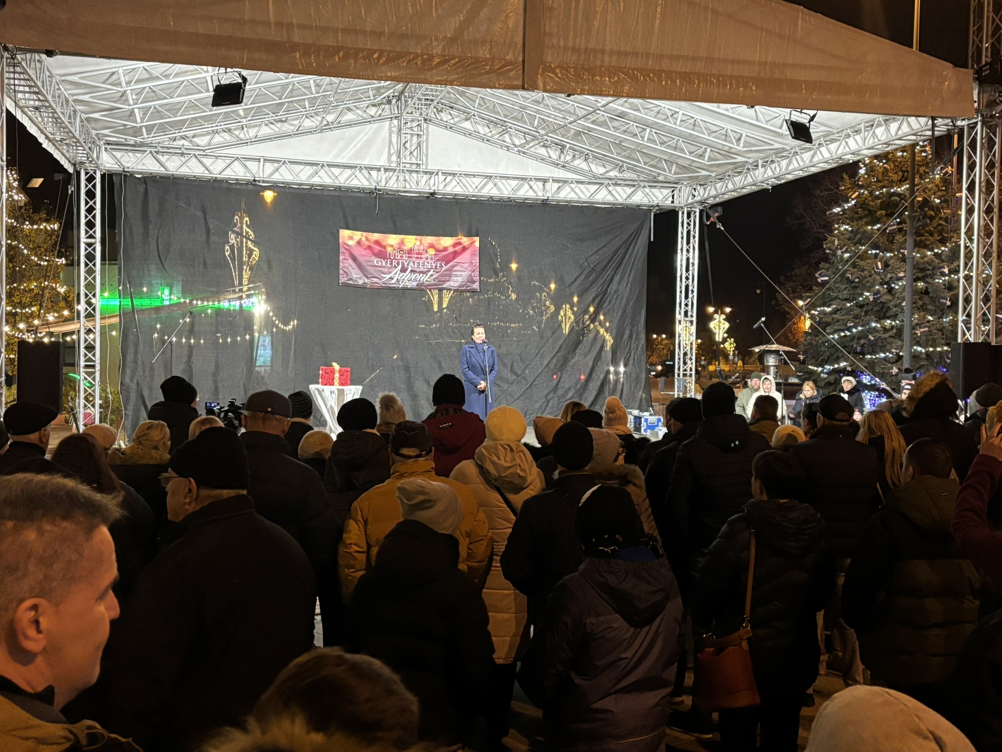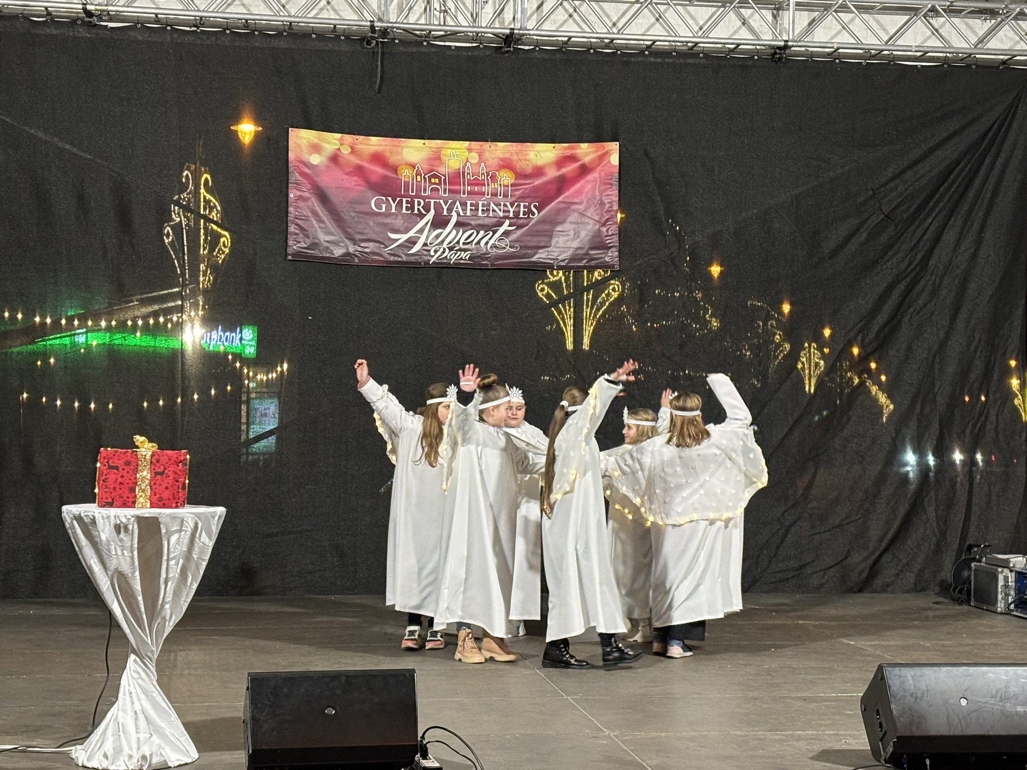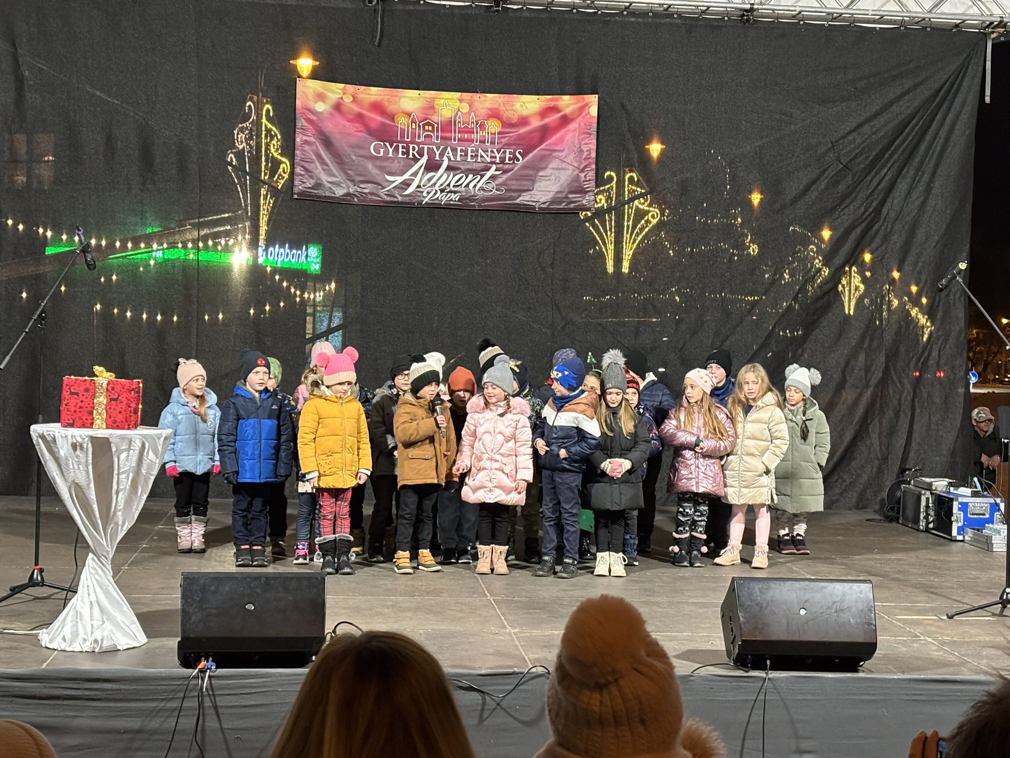 A szép számú ünnepváró közönséget Vadász Krisztina alpolgármester köszöntötte, majd pedig Cséry Gergő katolikus plébános tartott rövid igehirdetést. Advent első vasárnapján a Szent István Római Katolikus Általános Iskola elsős és negyedikes diákjainak műsora volt látható a színpadon.