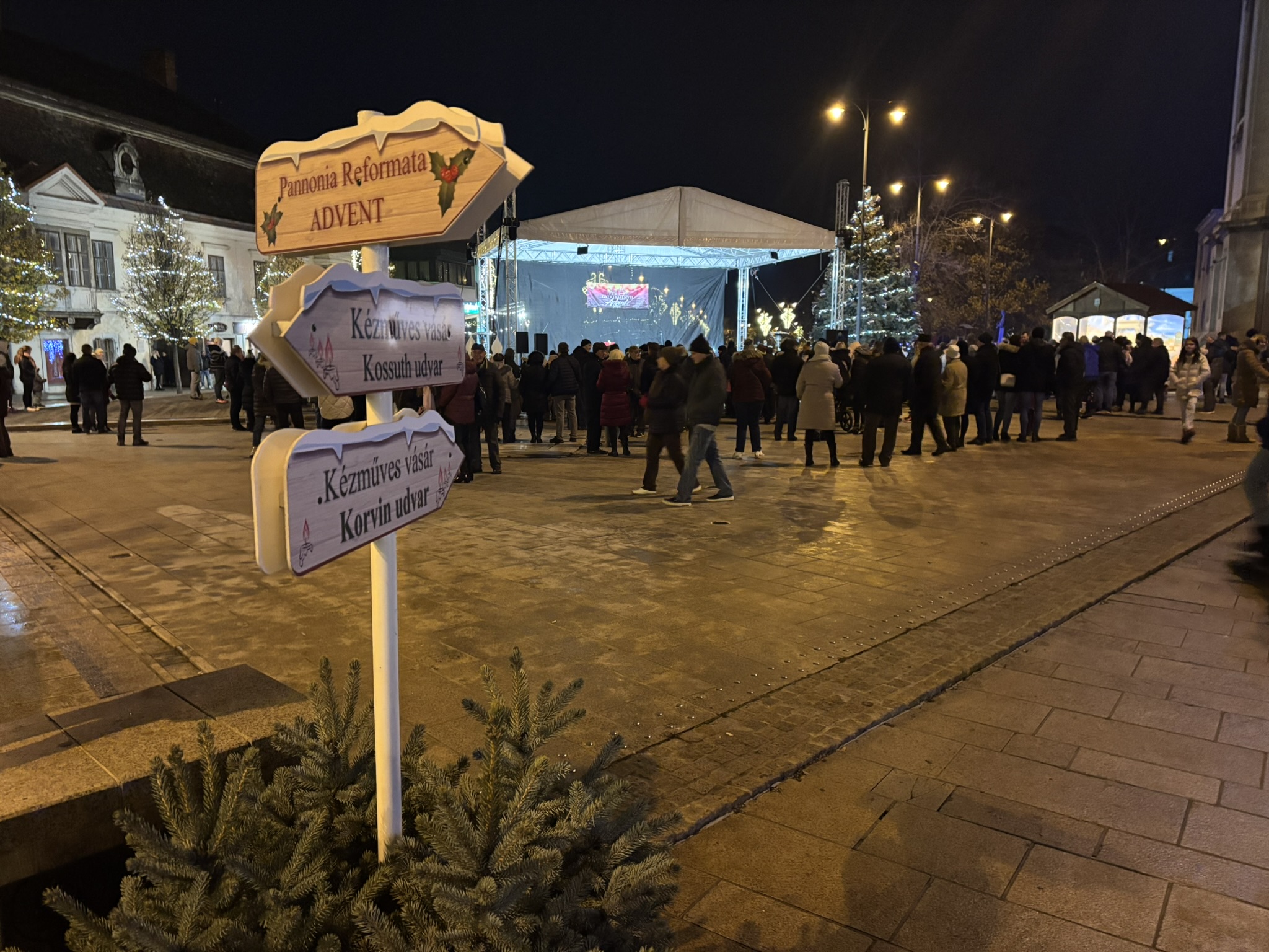 Az adventi hétvégéken a Pannonia Reformata udvarában, a Kossuth udvarban és a Korvin udvarban kézműves vásár várja az érdeklődőket, a Fő téren pedig elsősorban forró italokat és finom ételeket kapni a faházakból.