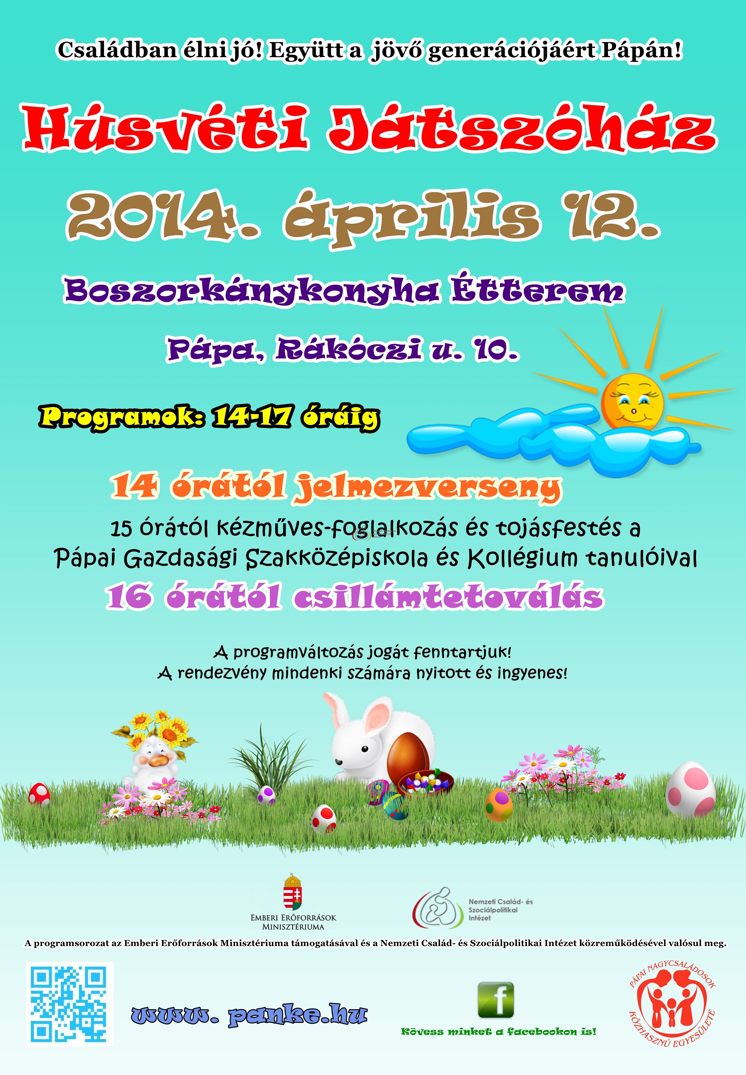 Nevezni lehet a facebook oldalunkon (Pápai Nagycsaládosok Közhasznú Egyesülete) vagy a 2010panke@gmail.com e-mail címen.