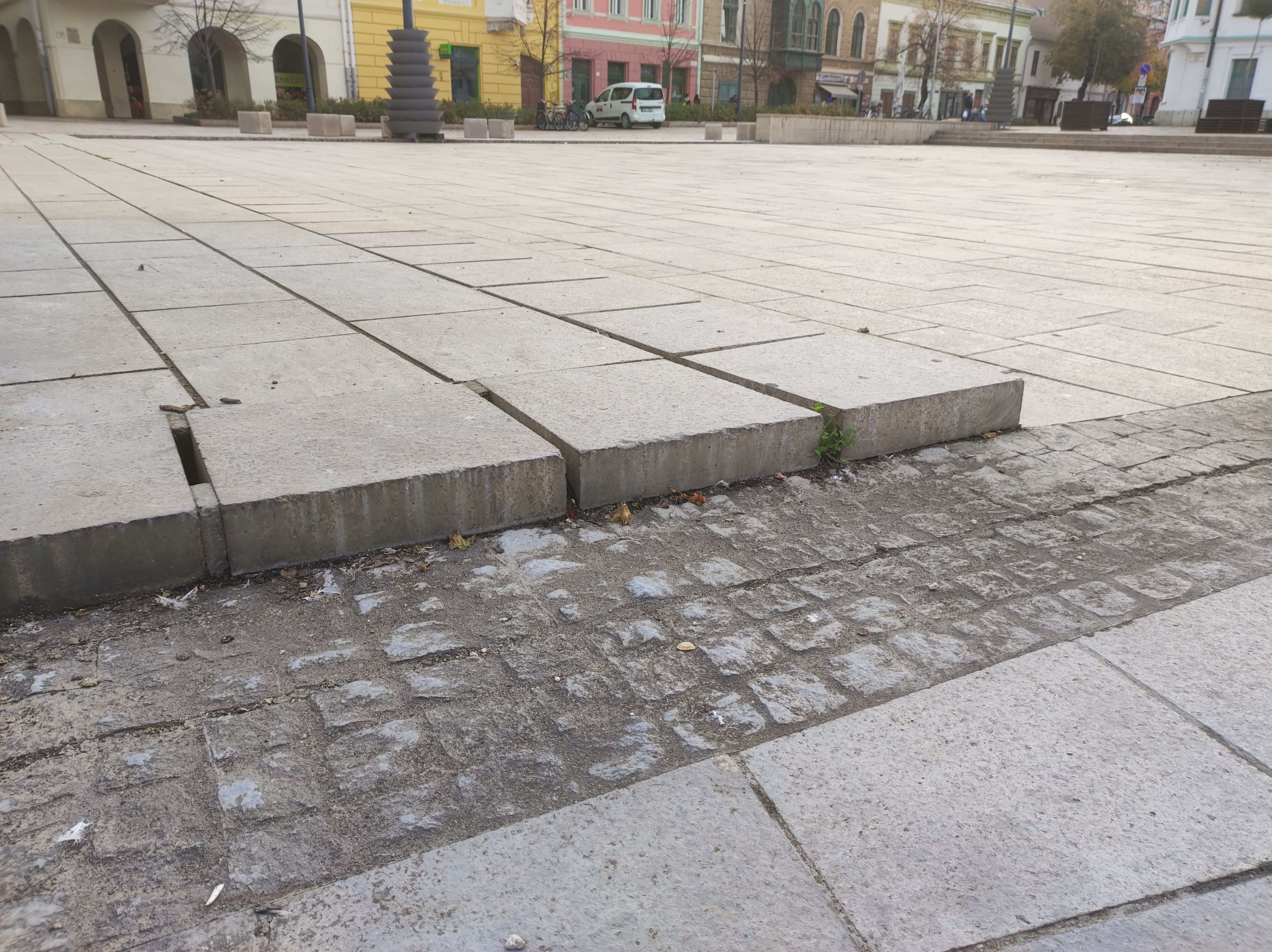 Most, 8 évvel a Fő tér átadása után, a Városgondnokság több mint 700 darab kis kupakot fúr le a térkőbe, amelyek felhívják a járókelők figyelmét a szintkülönbségre, aminek talán ott sem kéne lennie, tekintettel arra, hogy a jégpálya eddig is nagyon nehézkesen működött, a jövőben pedig talán többé nem fog.