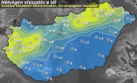 Az Északi-középhegységben és az Alpokalján az sem kizárt, hogy 20 centinél több hó esik, az erős szél pedig hordani fogja a havat. Délebbre egyre vegyesebb lesz a halmazállapot, lesz, ahol ónos eső teszi jégpáncéllá az utakat.