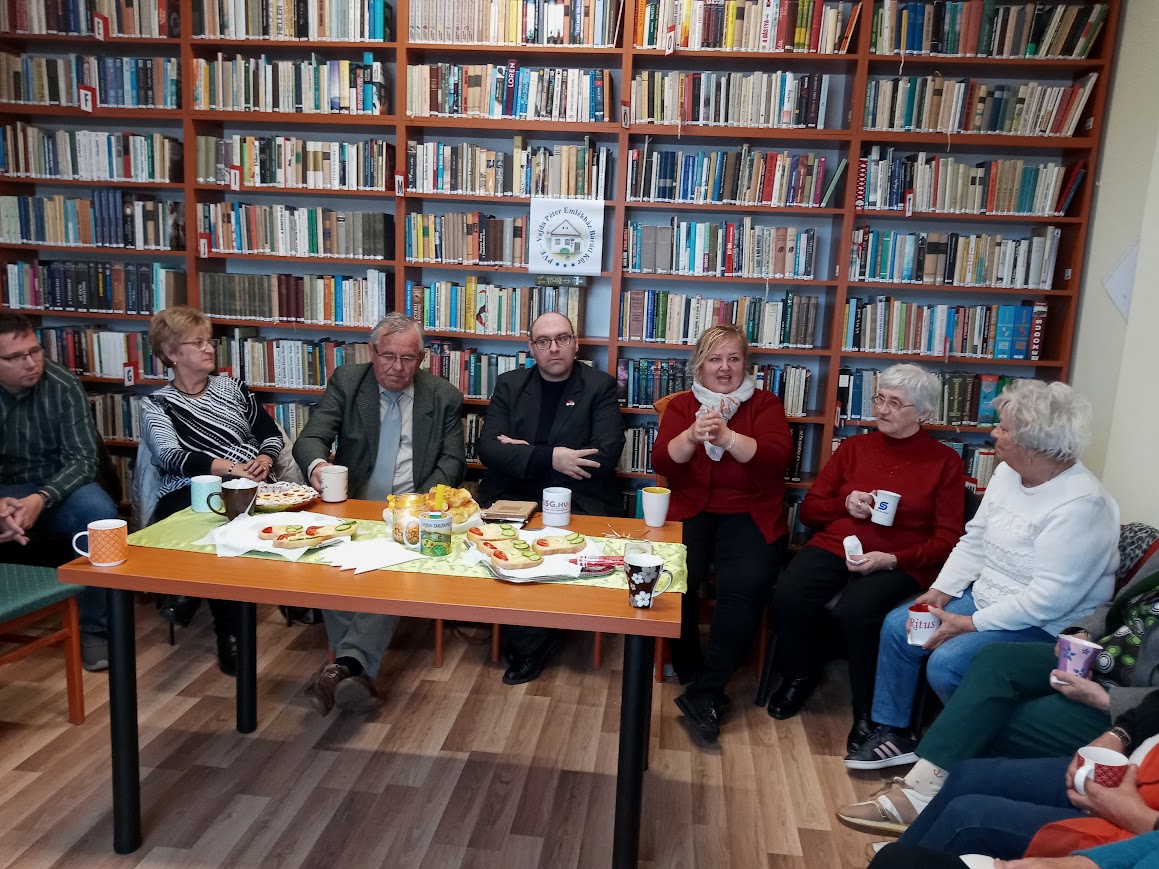 Az október 5-i, rendhagyó egyleti program „Kossuth-reggelivel” kezdődött a bakonytamási Kossuth Csárdában, ahol a tulajdonosok, Fejes Ákos és Fejesné Krébesz Lívia köszöntötték az emlékküldöttséget. Fehér asztal mellett idézték fel a résztvevők a reformszellemű, hazafias ősöket felvonultató Fejes-Tatay család neves sarjainak alakjait, főként a ragyogó emlékű negyvennyolcas elődöt, Tatay Sámuel esperest, nemzetőrt, aki 1848-tól élete végéig, 1893-ig a bakonytamási evangélikus gyülekezet lelkipásztora volt. Azzal vált híressé a forradalom kitörését követően, hogy 1848 tavaszán rendkívüli beszéddel lelkesítette az embereket a veszprémi nemzetőrség megalakulásakor, méghozzá Ésaiás próféta könyvének egy fontos részlete – 52,7: „Mily szépek a hegyeken az örömmondónak lábai, aki békességet hirdet, jót mond, szabadulást hirdet, aki ezt mondja Sionnak: Uralkodik a te Istened!” – alapján. Ezen máig fennmaradt, szép beszédből olvasott fel egy részletet az egylet vezetője.